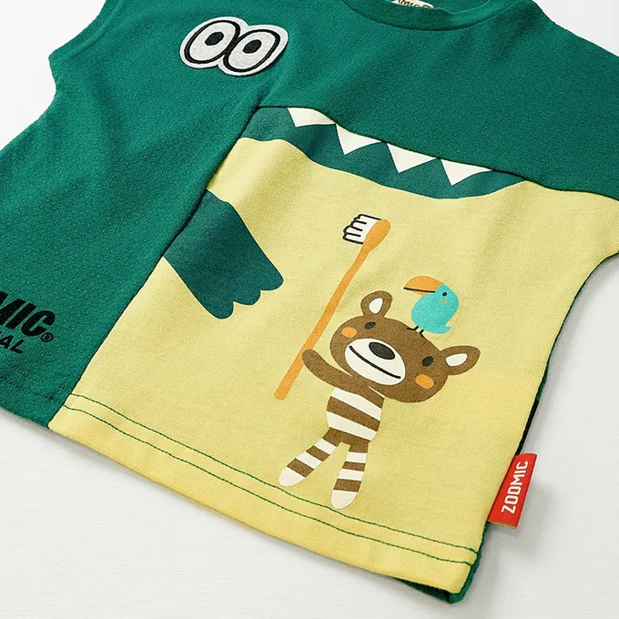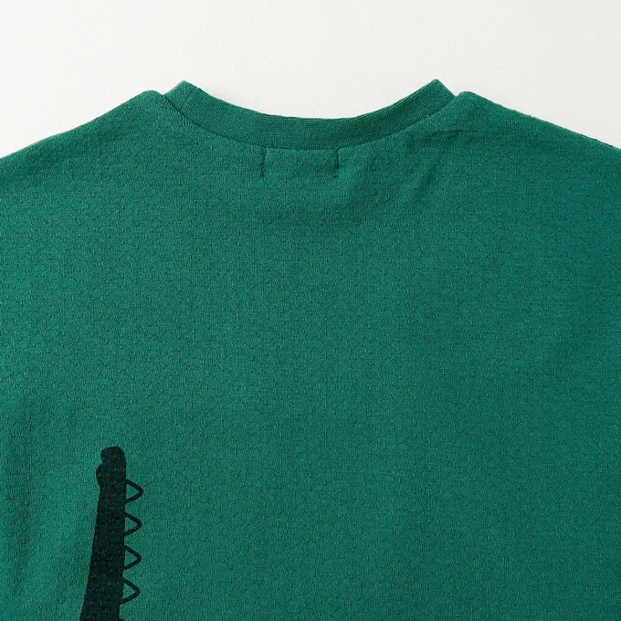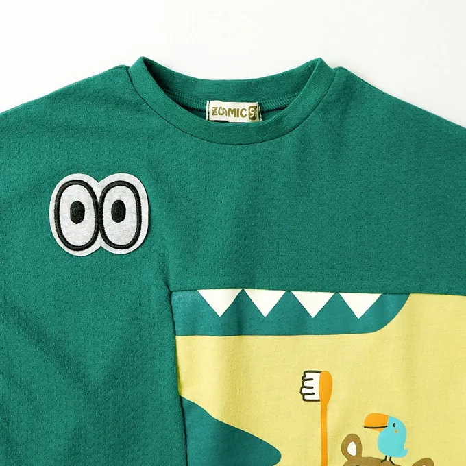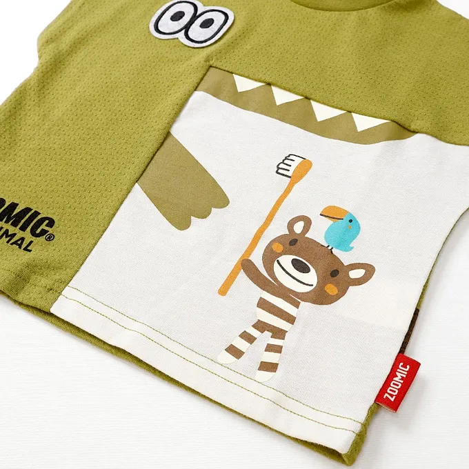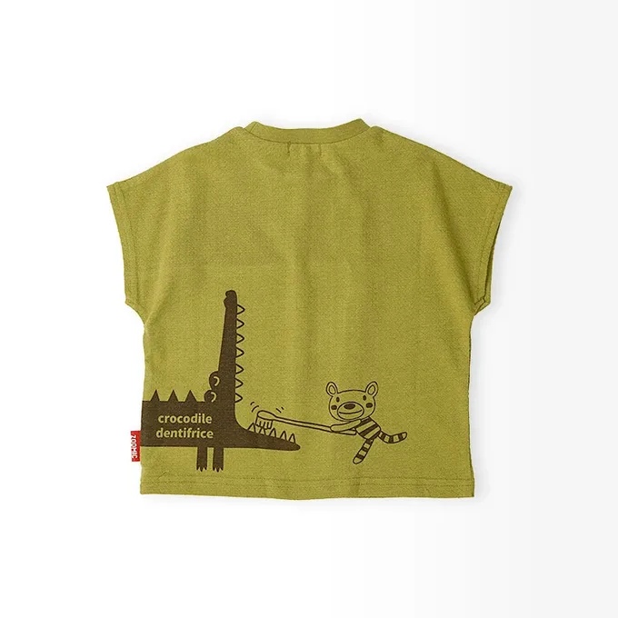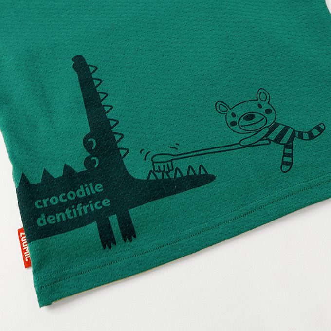 日本 ZOOLAND - 舒適緹花天竺棉短袖上衣-幫鱷魚刷牙-濃綠