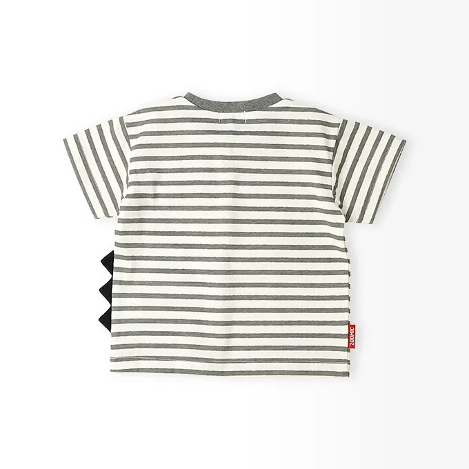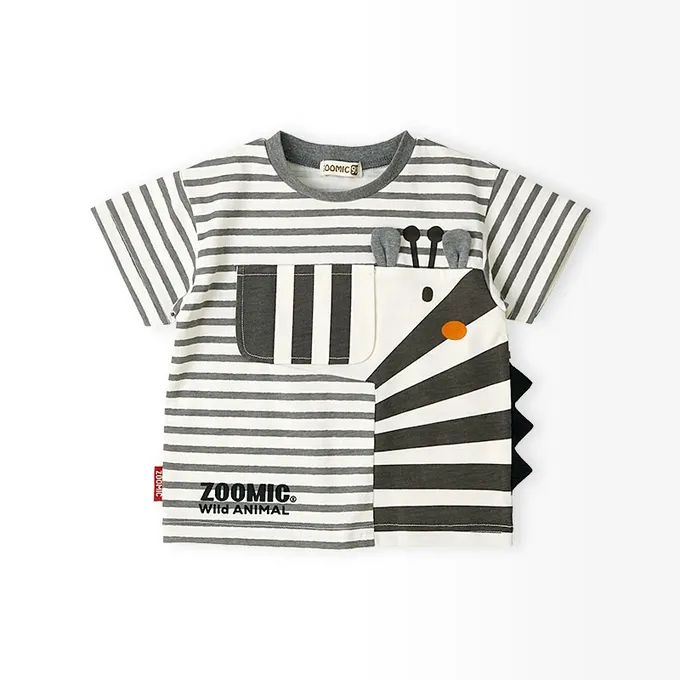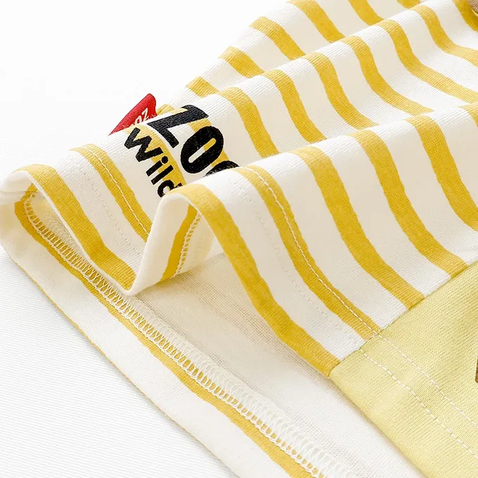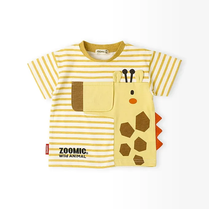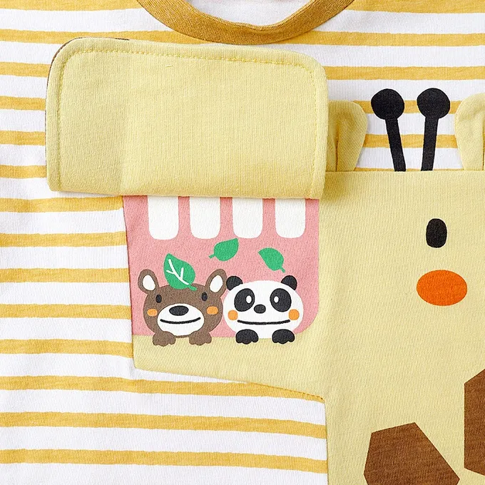 日本 ZOOLAND - 翻蓋可愛動物臉天竺棉短袖上衣-長頸鹿-芥末黃