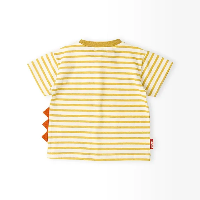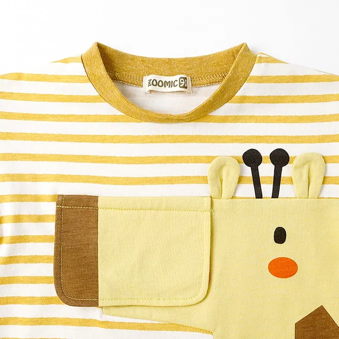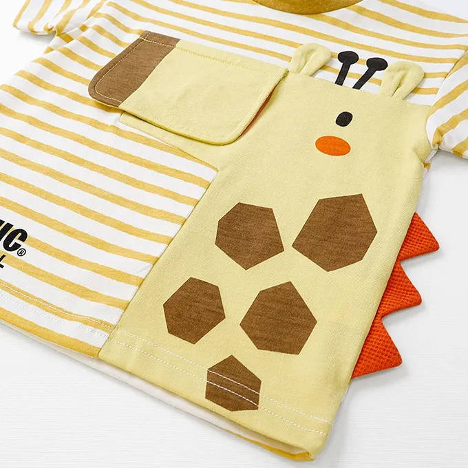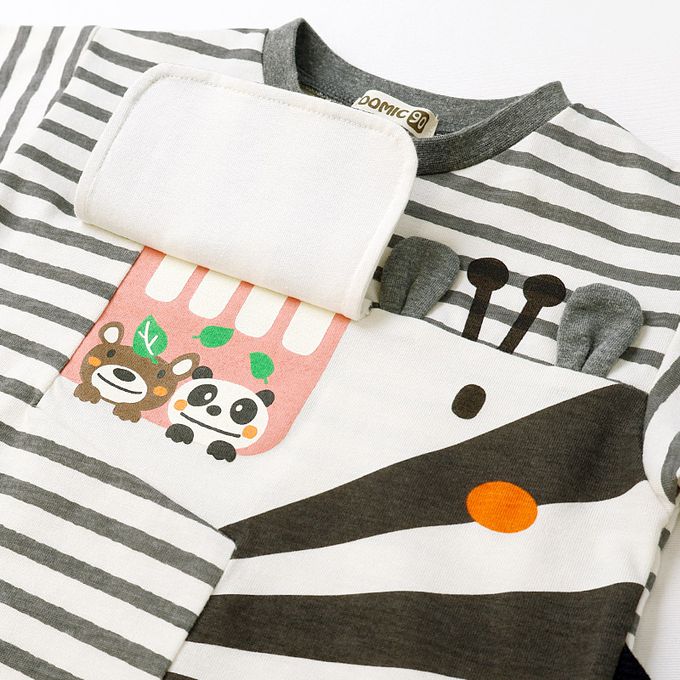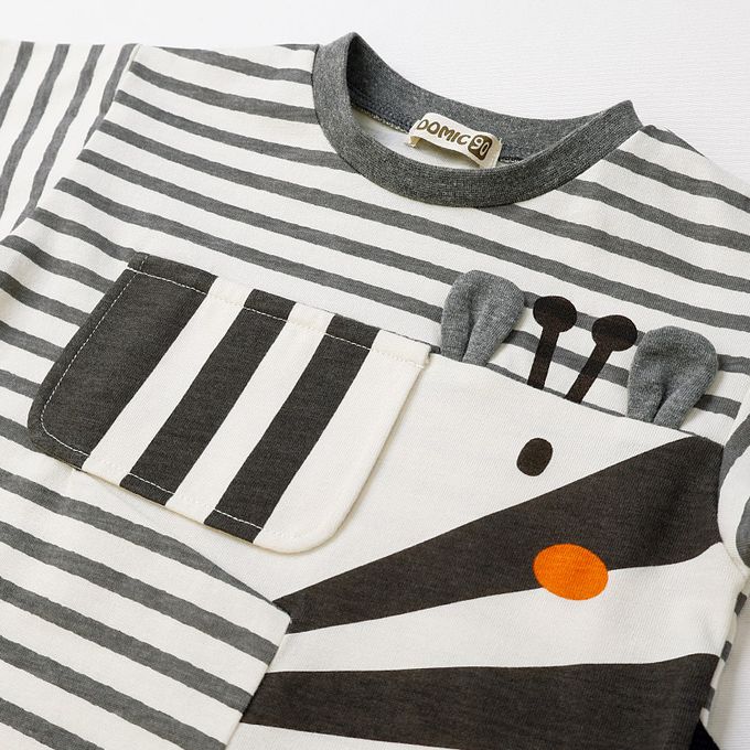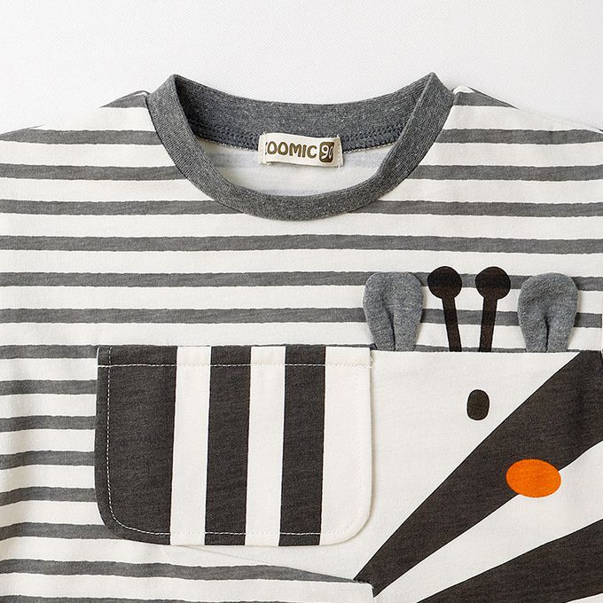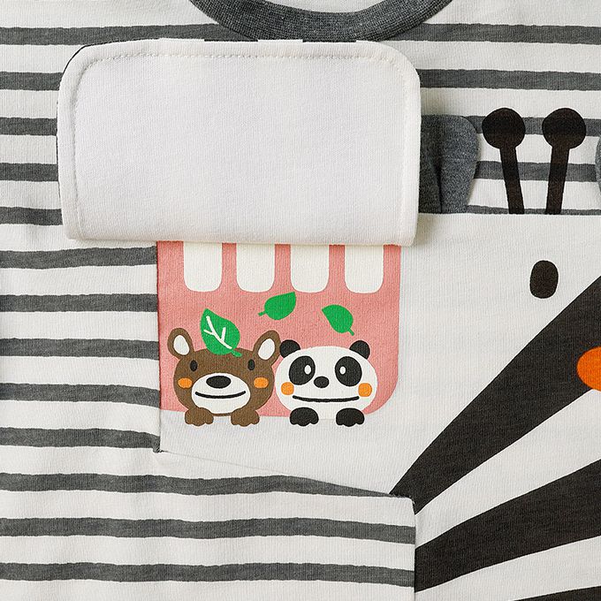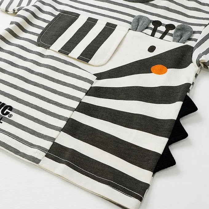日本 ZOOLAND - 翻蓋可愛動物臉天竺棉短袖上衣-斑馬-灰