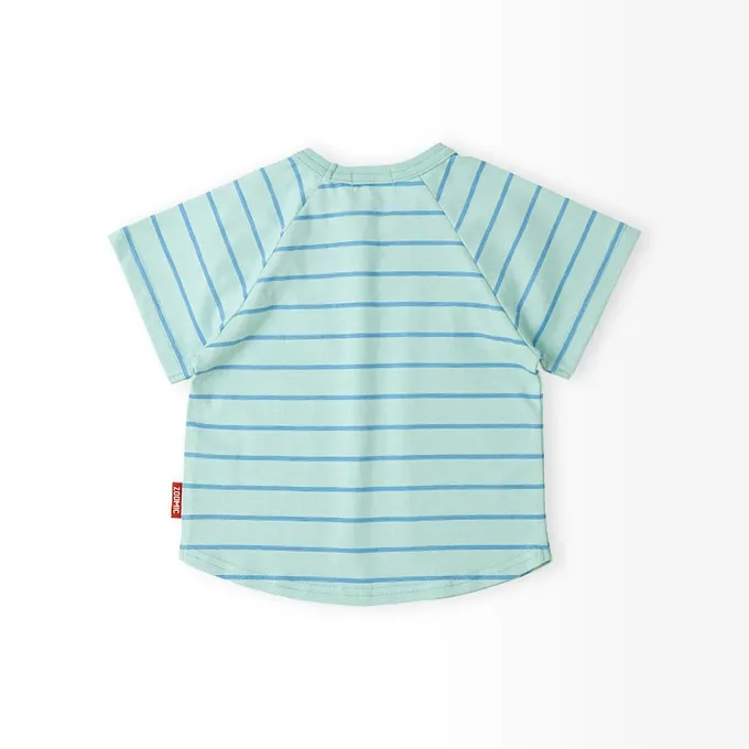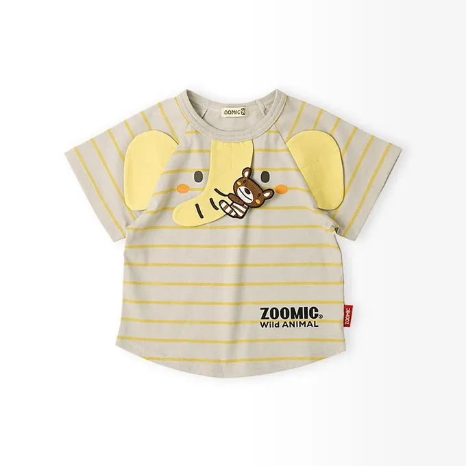 日本 ZOOLAND - 立體大象溜滑梯天竺棉短袖上衣-淺灰