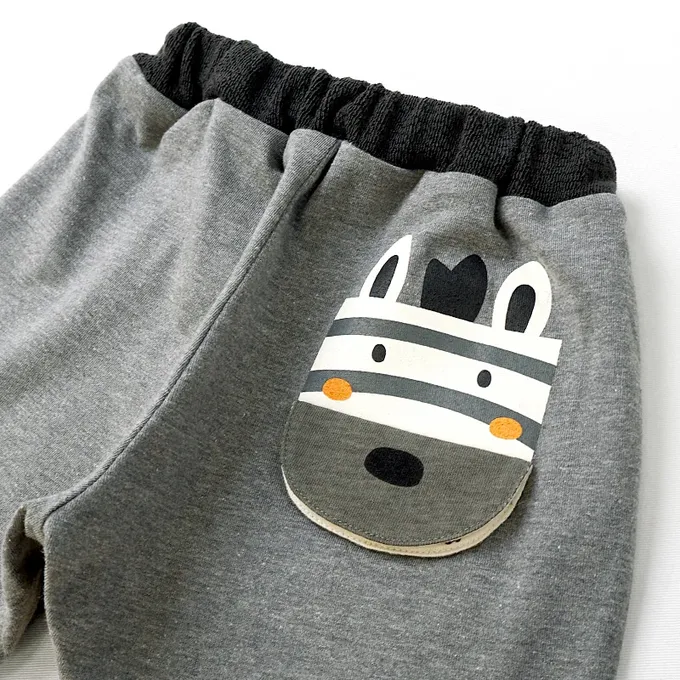 日本 ZOOLAND - 翻蓋可愛動物臉天竺棉短褲-斑馬-灰