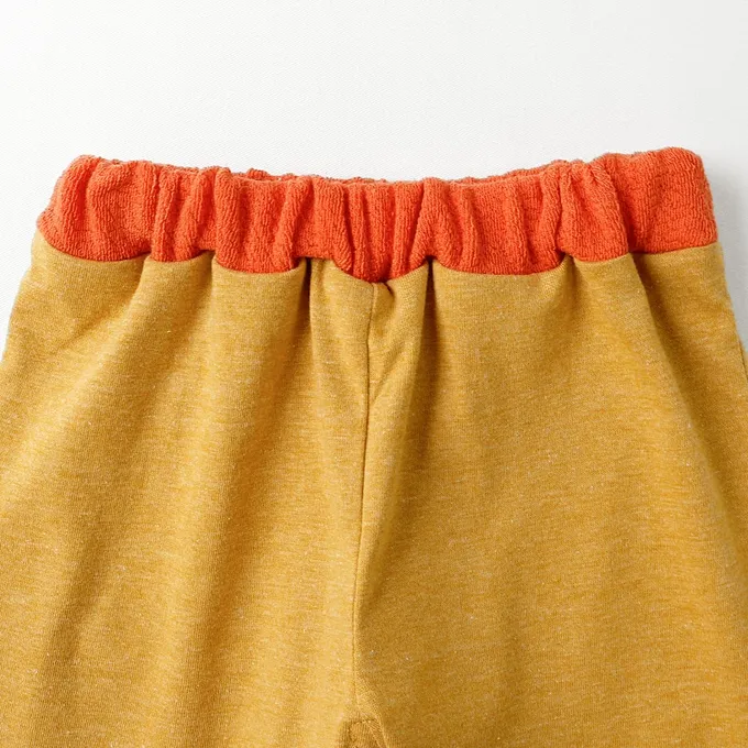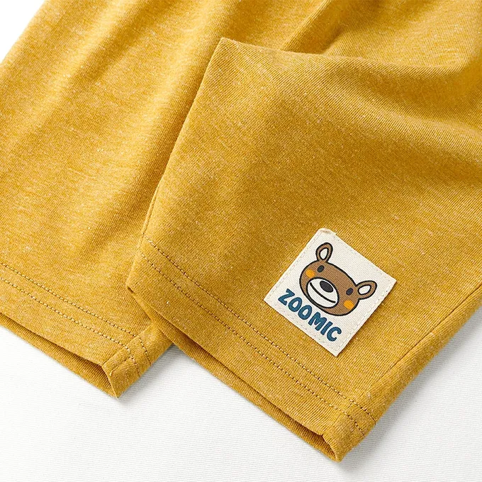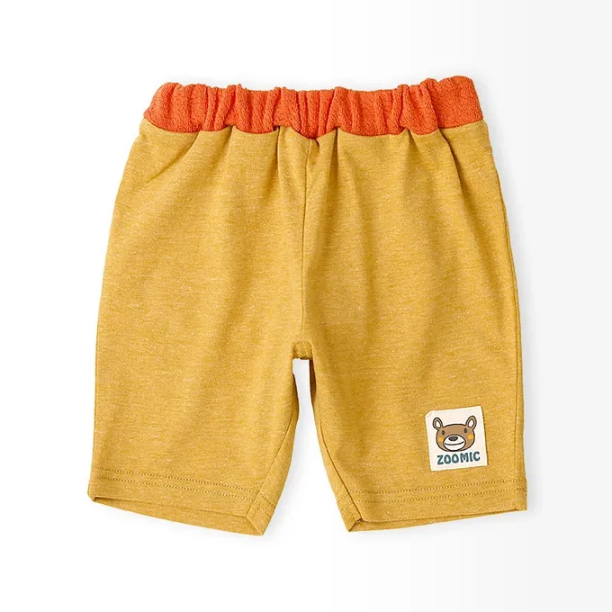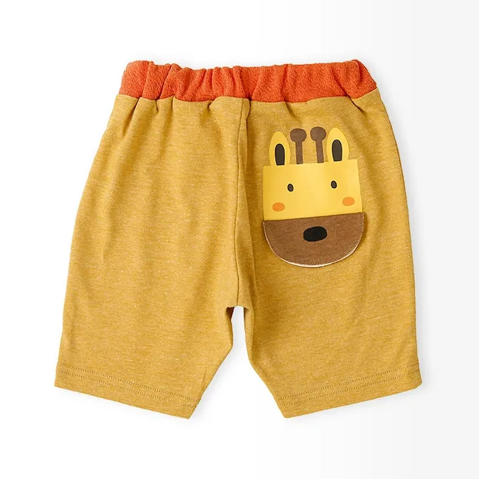 日本 ZOOLAND - 翻蓋可愛動物臉天竺棉短褲-長頸鹿-芥末黃