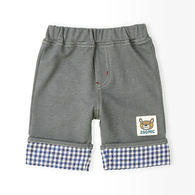 日本 ZOOLAND - 假面小熊可愛格子反摺五分褲-灰