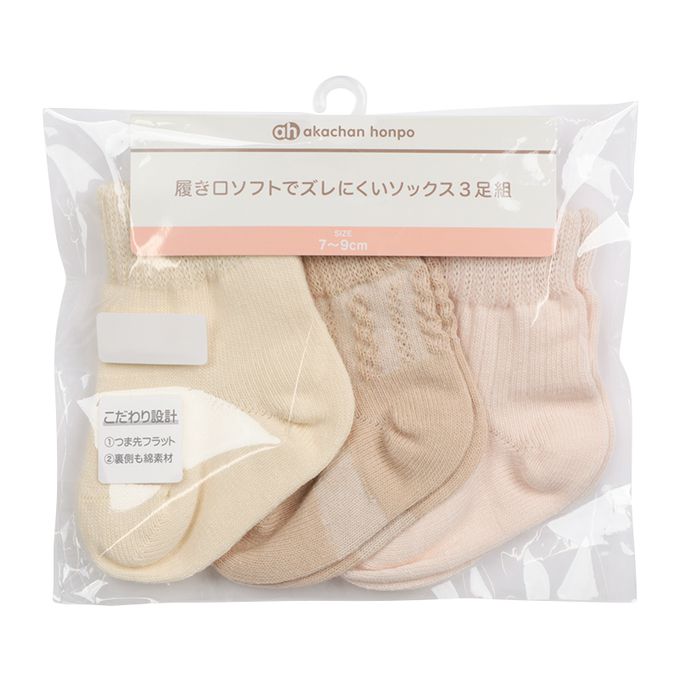 不易滑落 襪子3雙組-淺卡其色 (7~9cm)