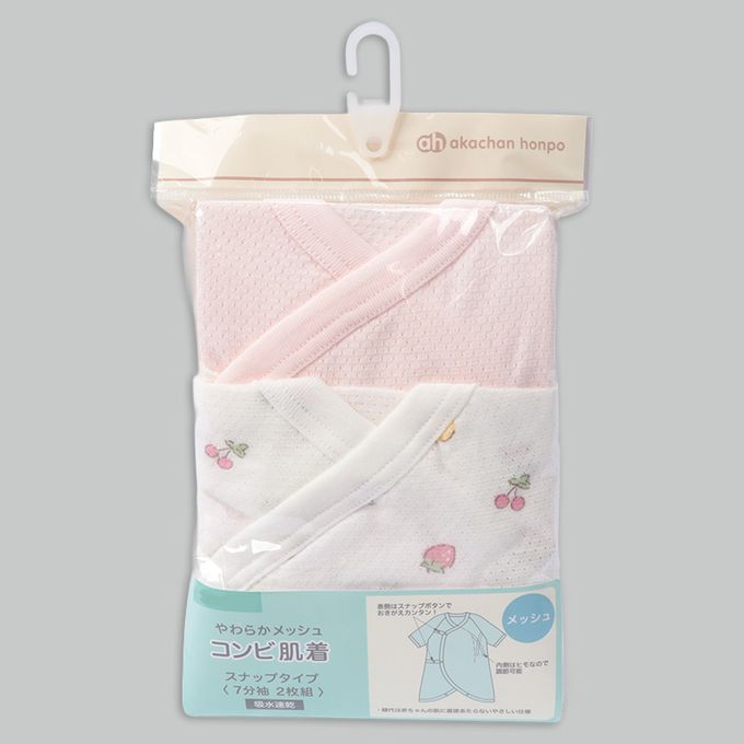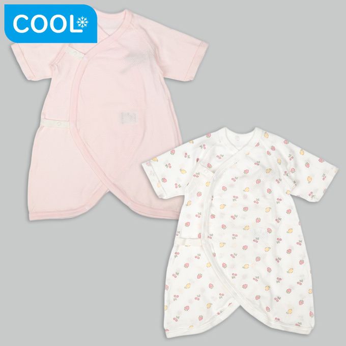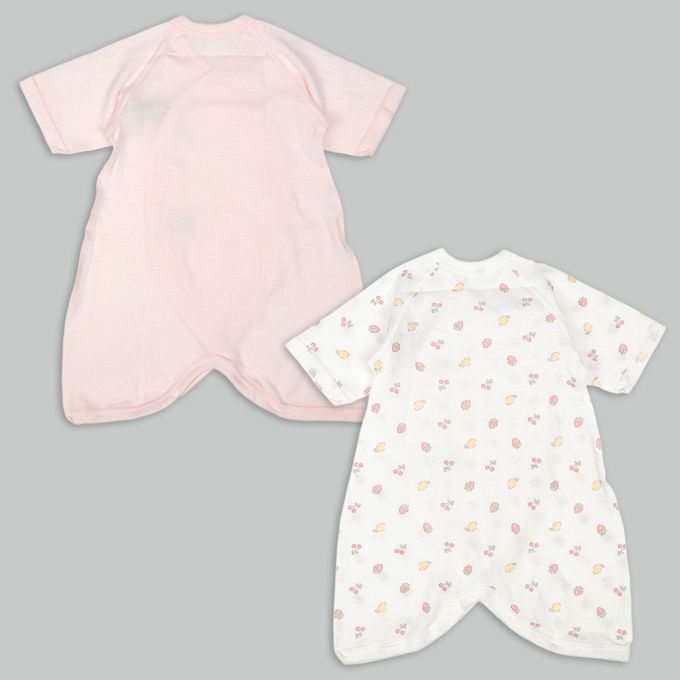 7分袖網眼蝴蝶裝2件組-按扣款 水果-粉紅色 (50~60cm)