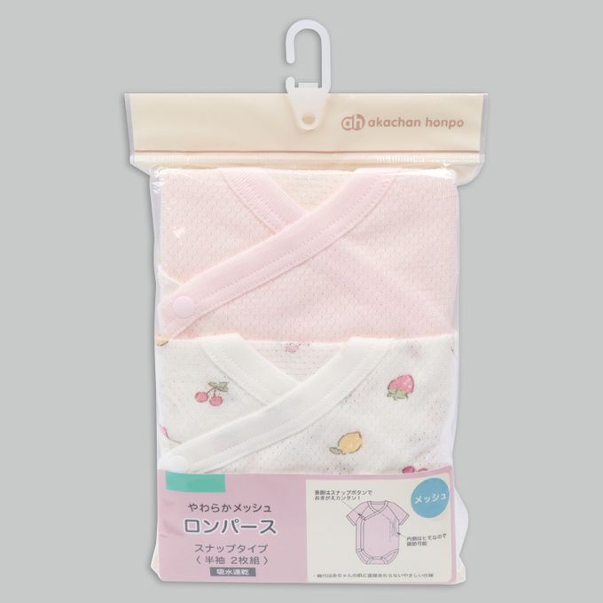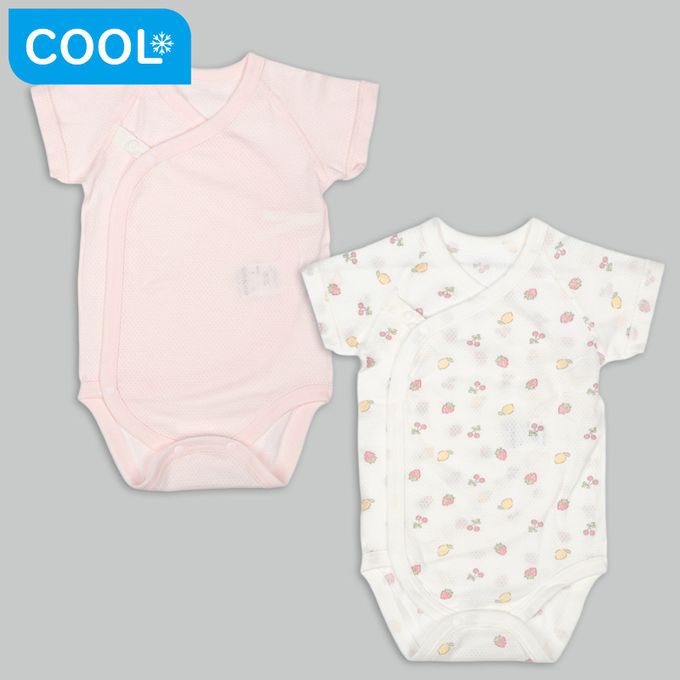 短袖網眼包屁衣2件組-按扣款 水果-粉紅色 (50~60cm)