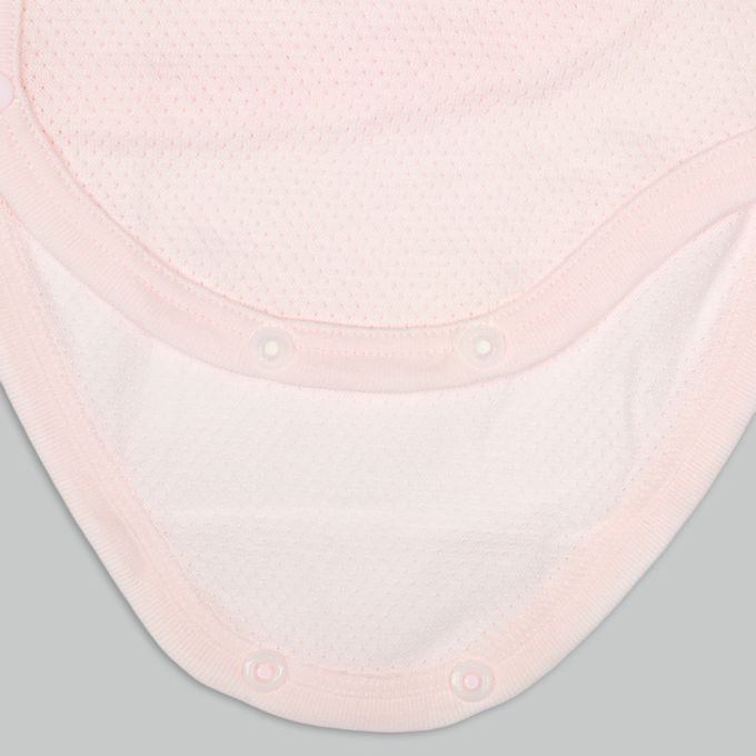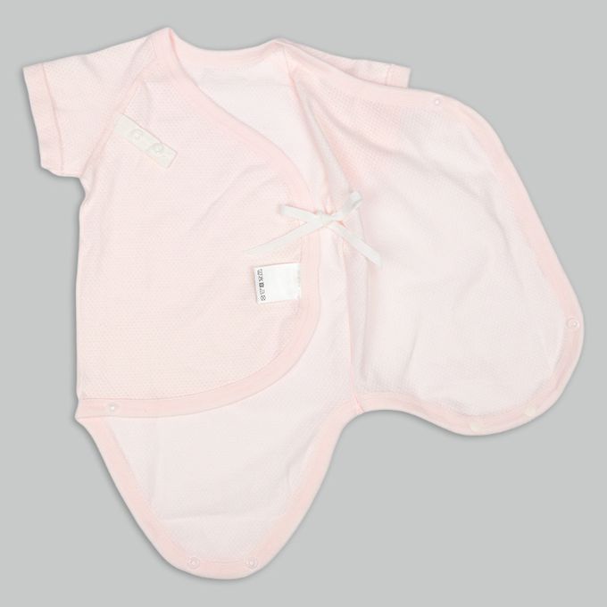 akachan honpo - 短袖網眼包屁衣2件組-前開式 點點 動物-粉紅色