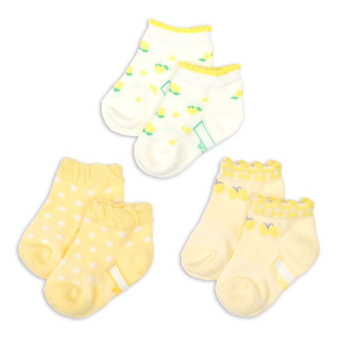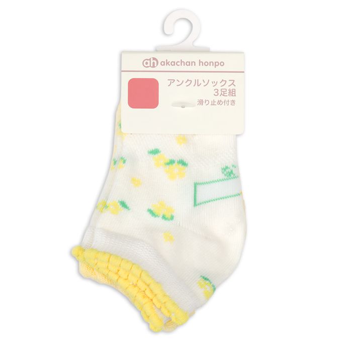 踝襪3雙組-小花&蝴蝶-黃色 (9~14cm)