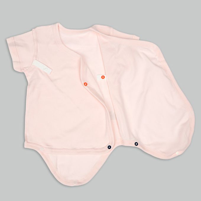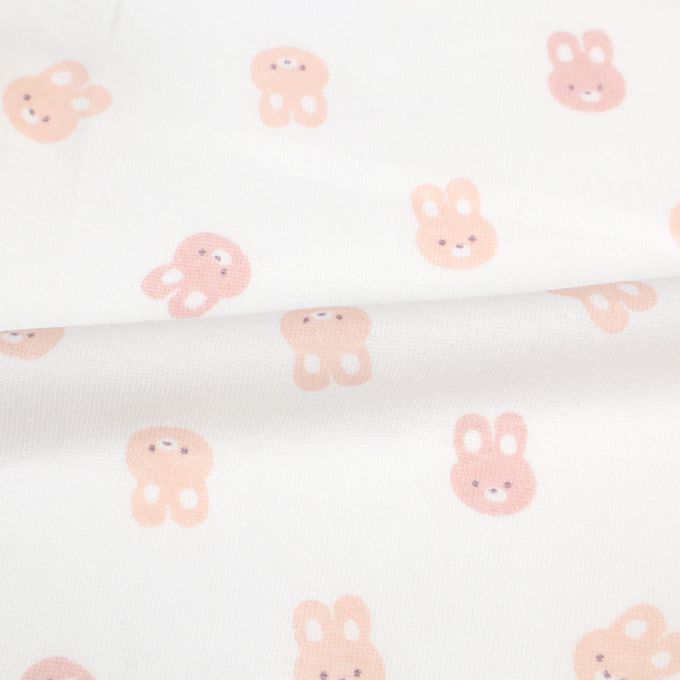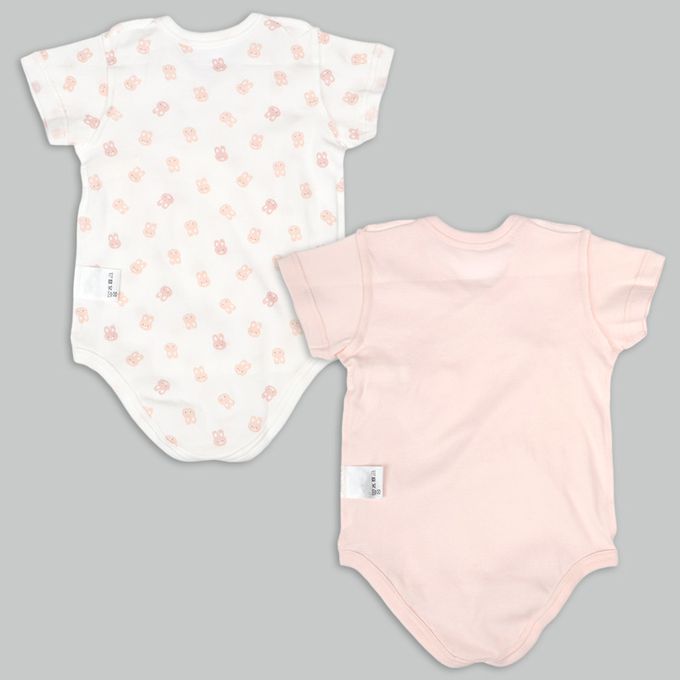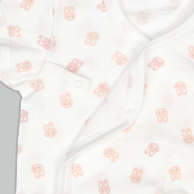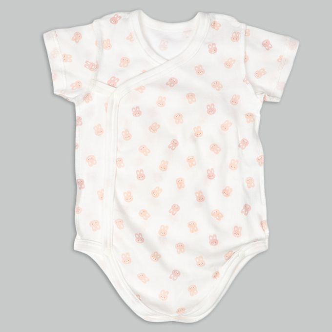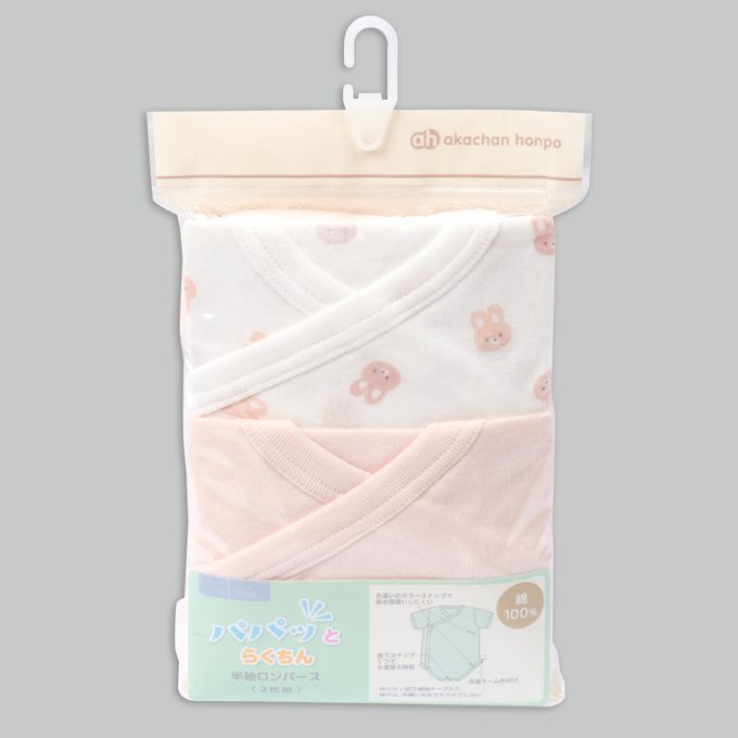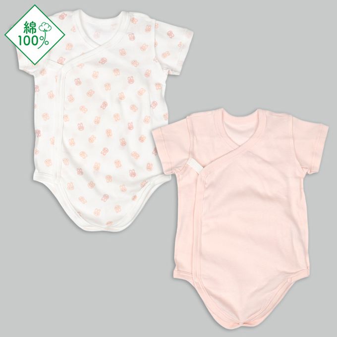輕鬆方便短袖包屁衣2件組-前開式 兔子-粉紅色