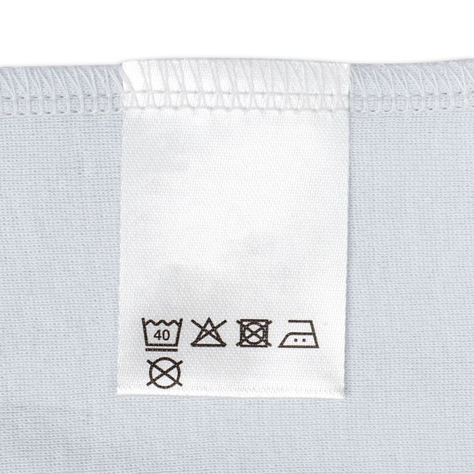 注意事項:●標示內容遵照台灣法規之規定。●請使用不含螢光增白劑的洗劑。●請勿熨燙釦子部分。●熨燙請使用墊布。