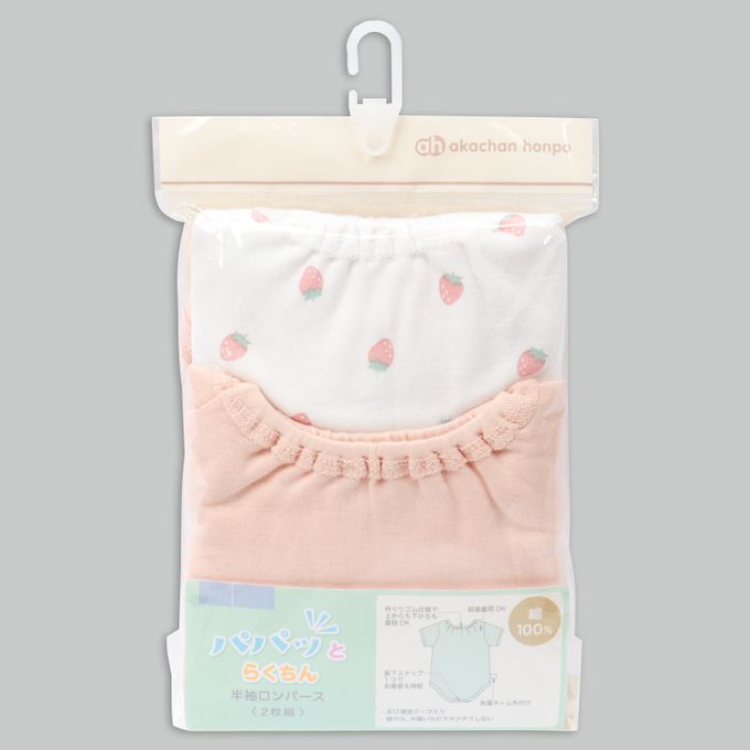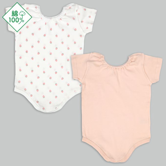 輕鬆方便短袖包屁衣2件組-套頭式 草莓-橘色