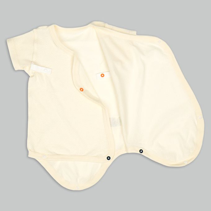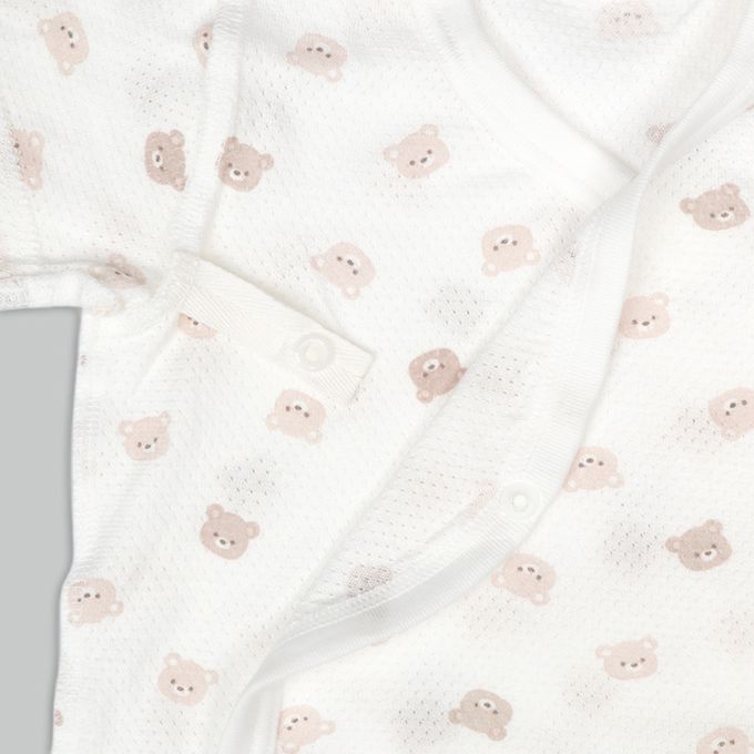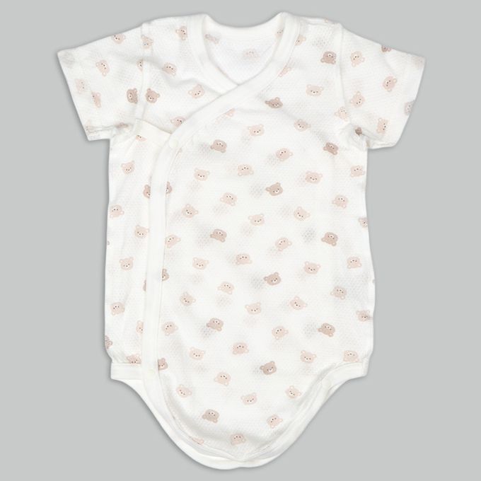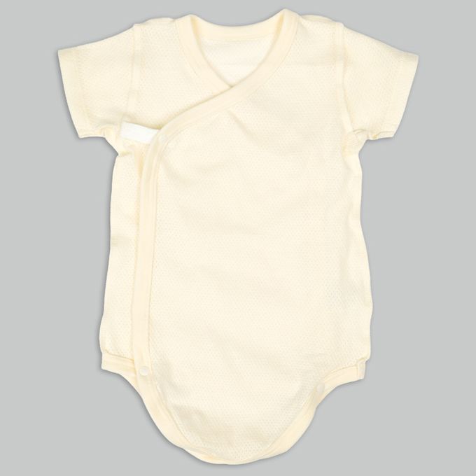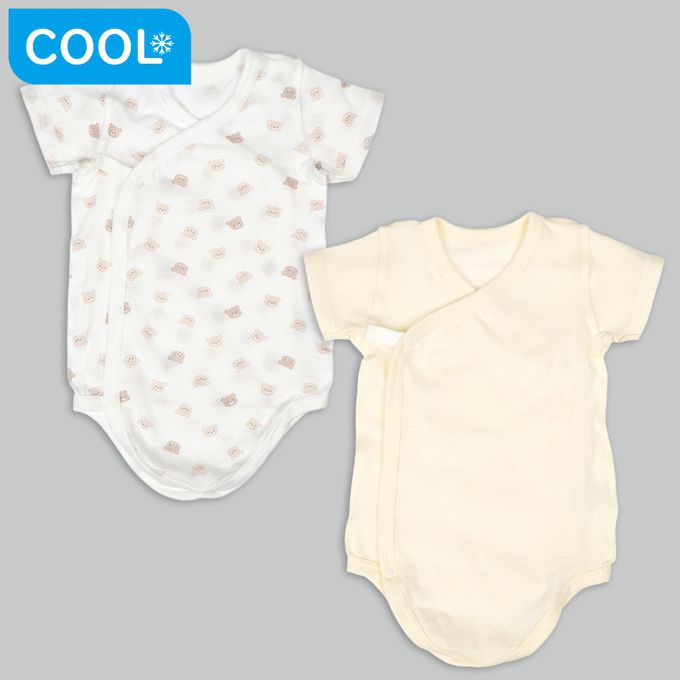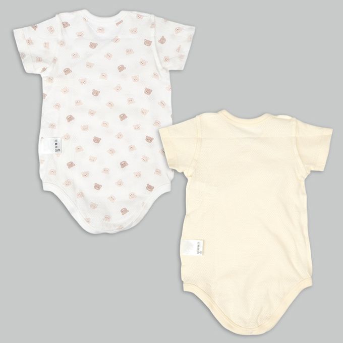輕鬆方便短袖包屁衣2件組-網眼 前開 小熊-黃色