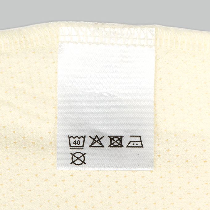 注意事項:●標示內容遵照台灣法規之規定。●請使用不含螢光增白劑的洗劑。●請勿熨燙釦子部分。●熨燙請使用墊布。