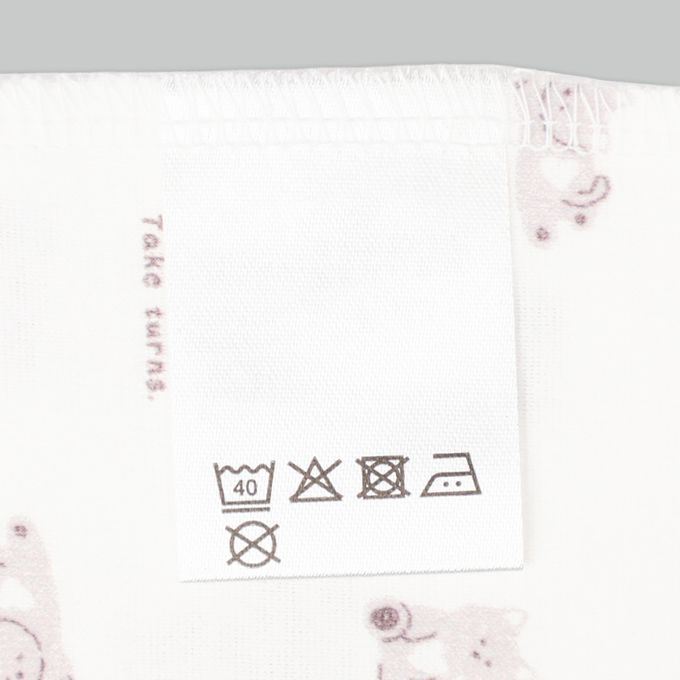 注意事項:●標示內容遵照台灣法規之規定。●請使用不含螢光增白劑的洗劑。●請勿熨燙釦子部分。●熨燙請使用墊布。