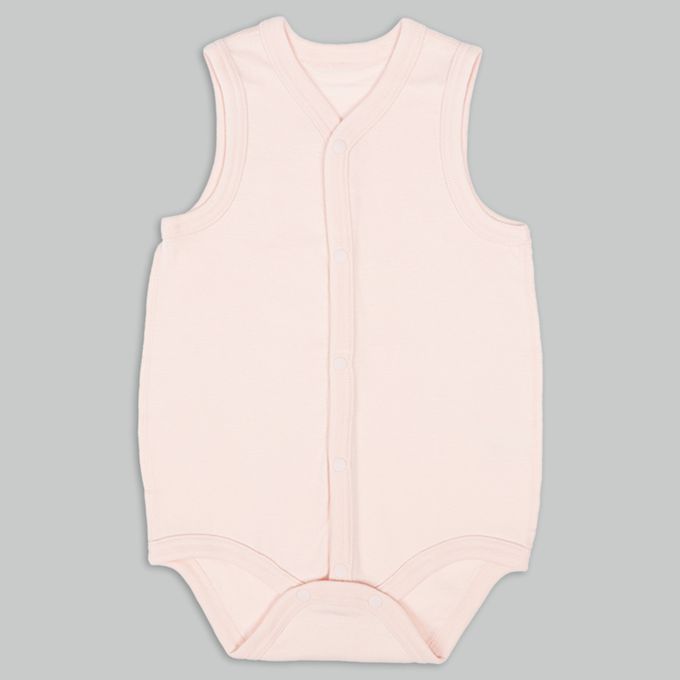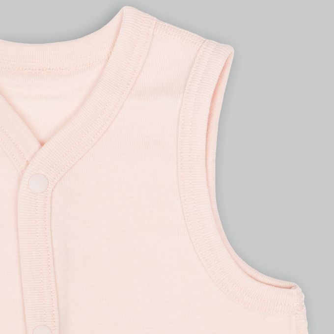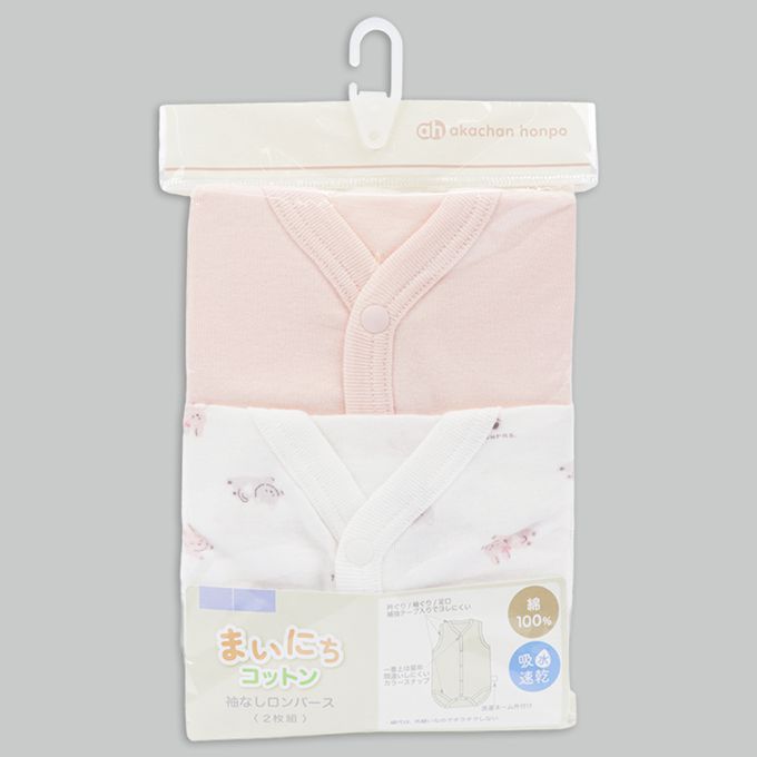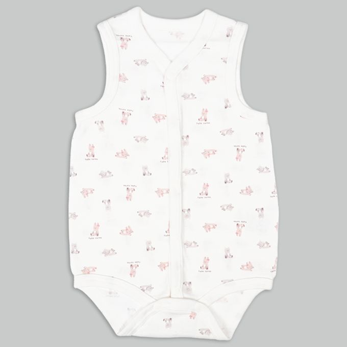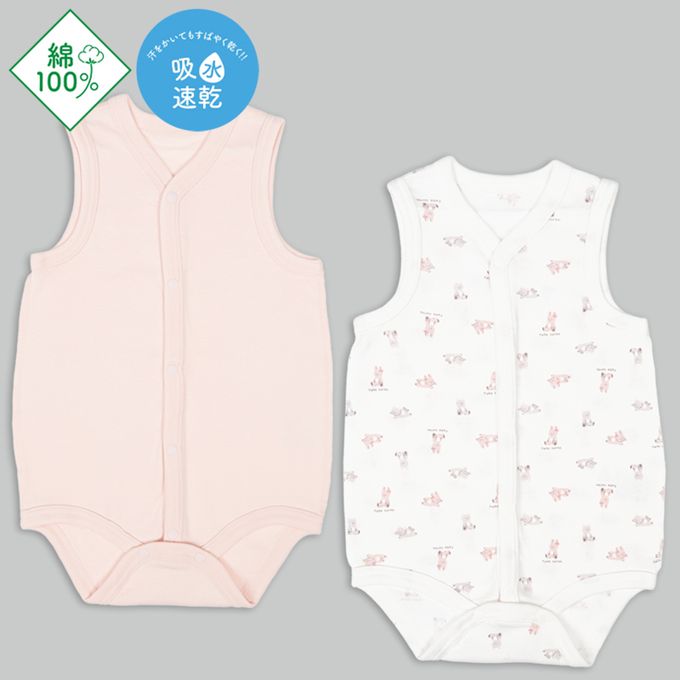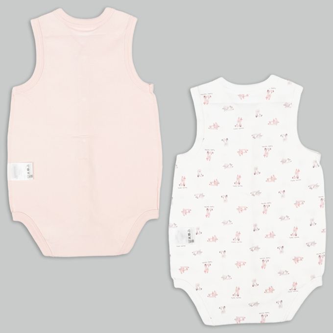 無袖包屁衣2件組-前開式 粉色動物-粉紅色