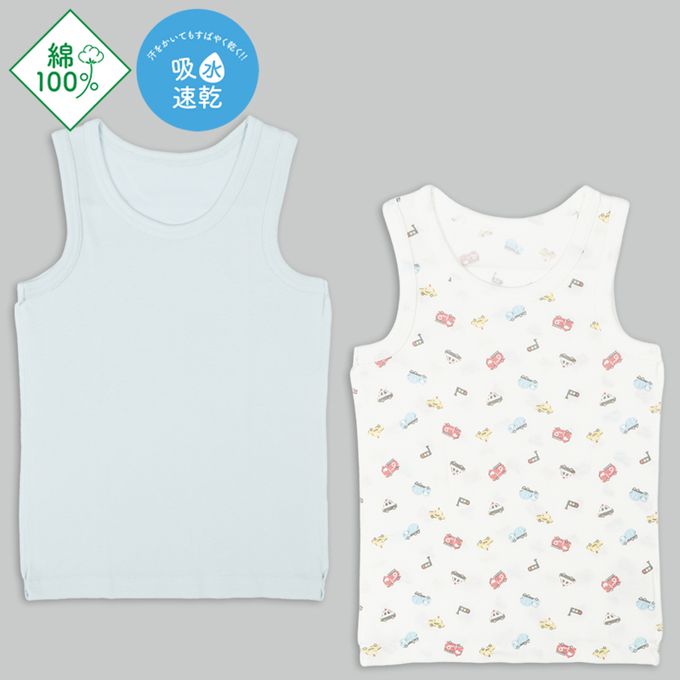 akachan honpo - 坦克背心2件組-網眼 汽車-綠色