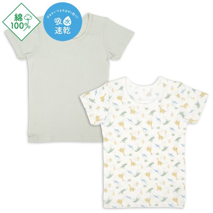 短袖圓領上衣2件組-恐龍-綠色