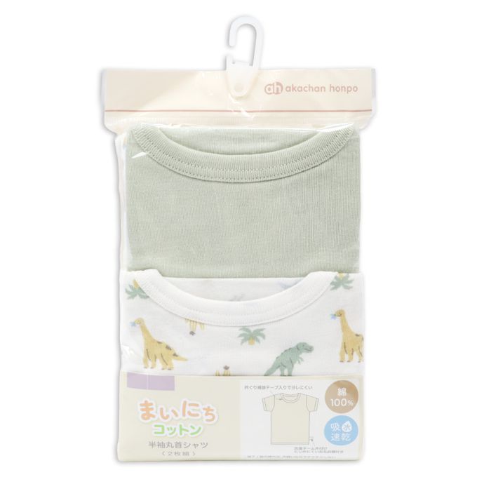 akachan honpo - 短袖圓領上衣2件組-蓬鬆棉質-原色
