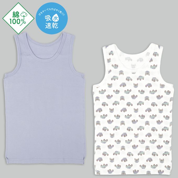 akachan honpo - 坦克背心2件組-網眼 汽車-綠色