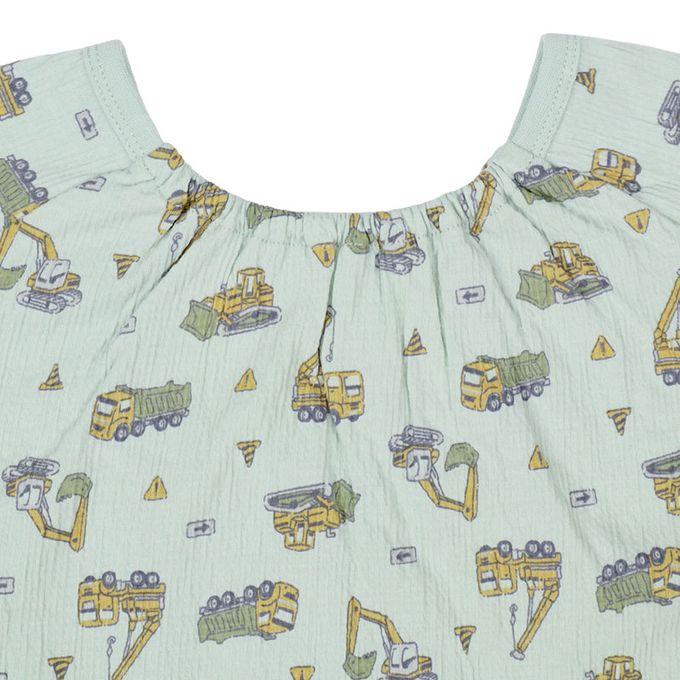 短袖家居服 穿衣練習-套頭式 工程車-綠色