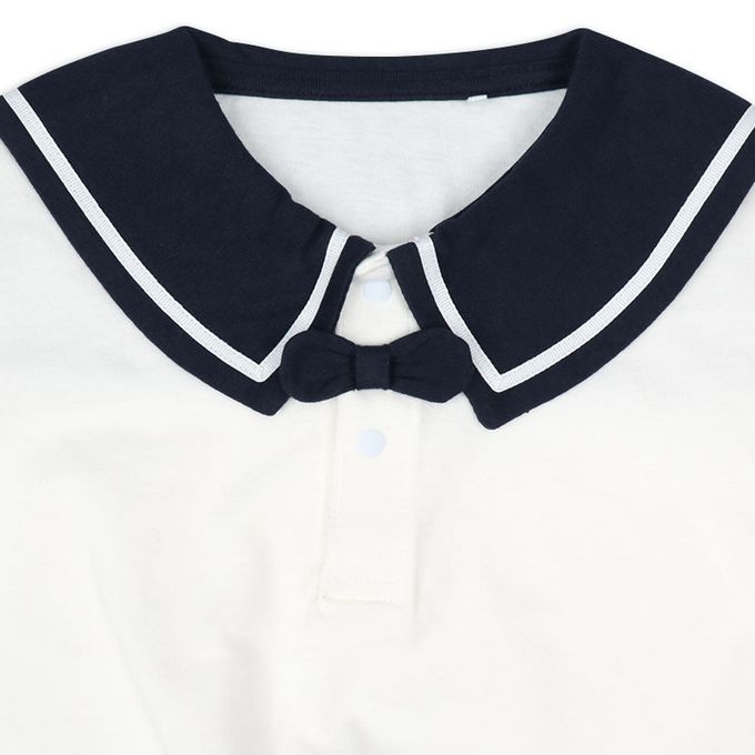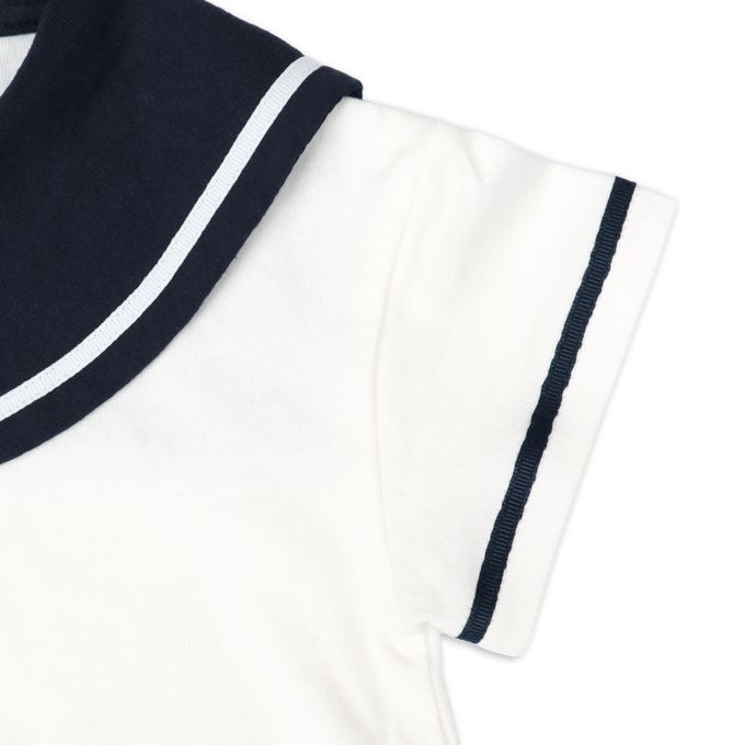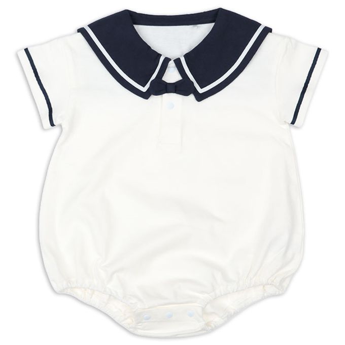 akachan honpo - 短袖水手風包屁衣-平織 航海圖案-深藍色