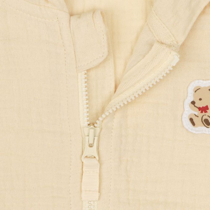 帽子上的小熊耳朵及胸前的小熊布貼非常可愛