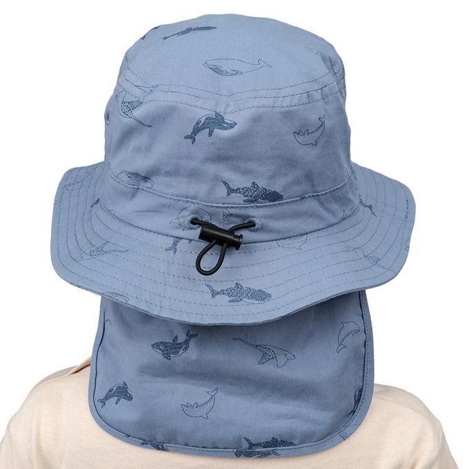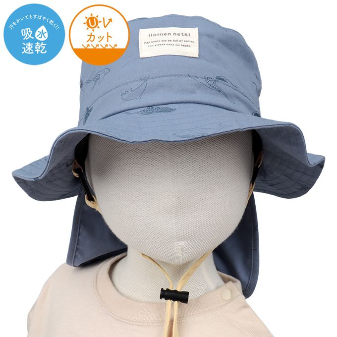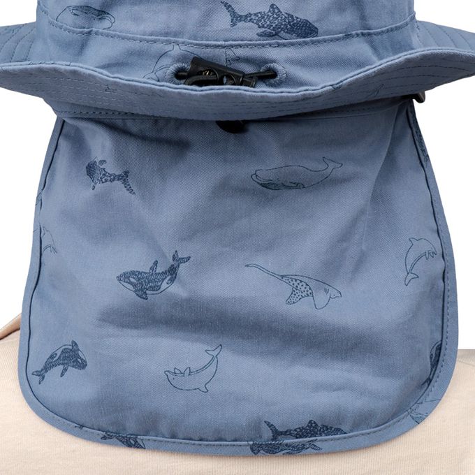 漁夫帽 附防曬遮陽布-滿版印花 吸水速乾-藍色
