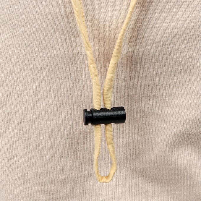 將帽子後面的調節帶拉緊,即可調整頭圍。有附外出活動時非常需要的可拆卸防曬遮陽布。下巴有固定繩可防止被風等吹落。固定繩一側在受到強力拉扯時會脫落,另一側為掛鉤扣。