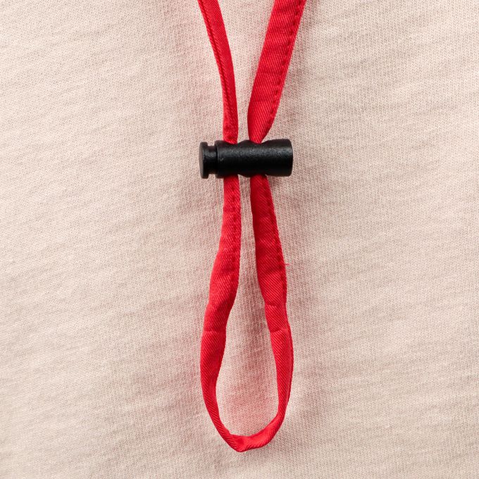 將帽子後面的調節帶拉緊,即可調整頭圍。有附外出活動時非常需要的可拆卸防曬遮陽布。下巴有固定繩可防止被風等吹落。固定繩一側在受到強力拉扯時會脫落,另一側為掛鉤扣。