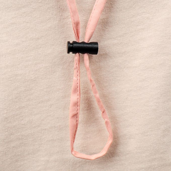 將帽子後面的調節帶拉緊,即可調整頭圍。有附外出活動時非常需要的可拆卸防曬遮陽布。下巴有固定繩可防止被風等吹落。固定繩一側在受到強力拉扯時會脫落,另一側為掛鉤扣