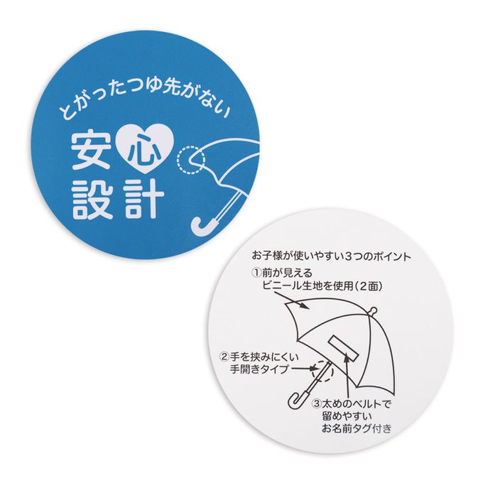 注意事項:●使用後請務必陰乾。●本產品部分零件有尖銳處,使用前請確認周圍環境安全。●請勿當作拐杖使用。●手把或骨架破損時,請勿使用。●請勿甩動或投擲本產品。●強風時可能會破損,請勿使用。●印刷部分可能會剝落,請勿用力摩擦。●請避免置於陽光直射下。●產品特性上,透明材質容易刮傷,請小心操作。●名牌帶部分的毛氈布造型若淋到雨水會較不易乾,請先整理好形狀並充分晾乾後再行收納。●塑膠骨架部分含有作為強化材質的玻璃纖維(Glass Fiber),請勿直接用手觸摸。若塑膠骨架出現破損、折斷、毛邊、變形或刮傷,可能會露出玻璃纖維,請立即停止使用,並確保破損部位不會接觸到皮膚。若不慎刺入皮膚且疼痛持續,請立即就醫。*請家長務必提醒孩童使用安全。