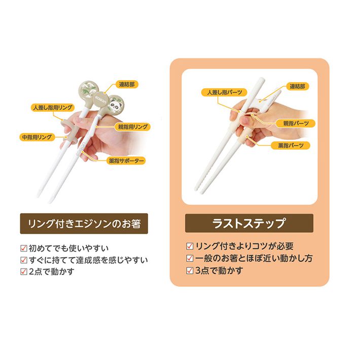 由職能治療師共同開發,能讓孩子正確且優雅地使用筷子。是邁向一般筷子的最後學習階段。如果能正確握取這款筷子,就能完美掌握握法。讓孩子能以優美姿態進食。