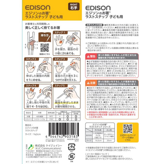注意事項:●使用前請先閱讀本說明書。 ●初次使用前請先清洗乾淨再使用。●使用後請務必清洗乾淨。清洗時請使用柔軟的海綿和餐具洗潔精,避免使用去污粉或棕刷等。●清洗後請充分晾乾,並保管於幼童無法取得的地方。●請勿用力拉扯或以指甲刮扯矽膠配件,以免造成破損。●請勿直接用火烤或用瓦斯爐・烤箱等。●請勿放置在火源旁。●請勿將重物置於本產品上。●摔落或受到強烈撞擊,可能會導致產品破損。※劣化時間依使用條件與頻率而異。※本產品可能為改善、改良之目的,會在未通知的情況下變更規格。<警告>●使用時,務必請家長陪同,監看孩子的使用狀況。●請勿作為其他用途使用。●若本產品產生傷痕、破損或龜裂時,請立即停止使用。●萬一不小心誤食時、請向醫生諮詢。●請勿手持本產品奔跑,以免跌倒時刺到眼睛或喉嚨而造成意外傷害。●因筷子前端較尖銳,使用時請特別注意。