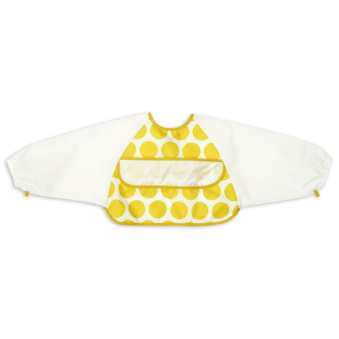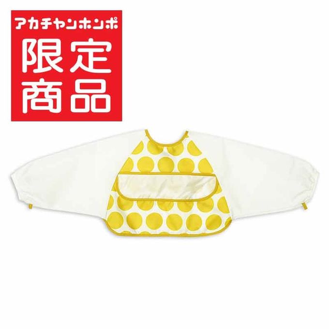 方便穿脫長袖圍兜-大圓點-黃色 (80~95cm)-日本製