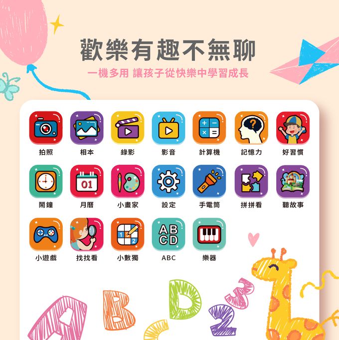 ★購買即贈32G記憶卡1張★ 照片拍攝 4800萬畫素 (插植) ; 影片拍攝 FHD 1080P (插植)★ 真正相機功能: 拍照、錄影、連拍、定時拍及多種濾鏡趣味拍★ 可使用 microSDXC 記憶卡 ,擴充更大的容量★ 預載益智小遊戲APP,變身多功能學習機(小畫家 \ 生活教育 \ 認識ABC \ 拼圖 \ 記憶遊戲 …等