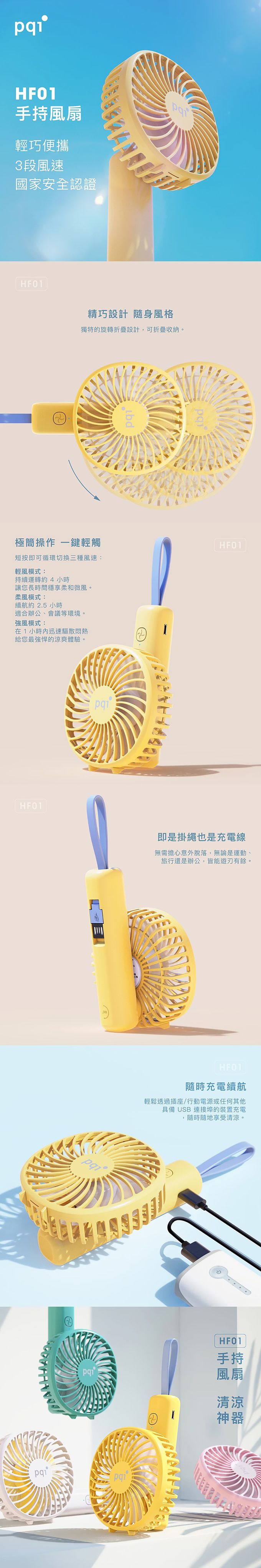 Pqi 三段式帶線手持風扇 HF01