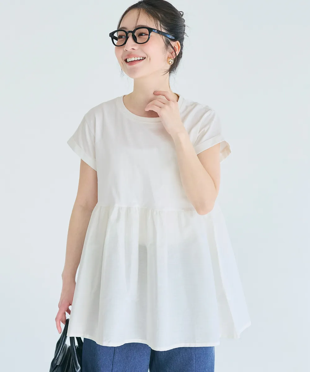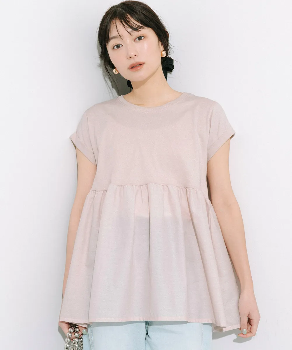 • 品名:簡潔圓領藏肉傘擺短袖上衣