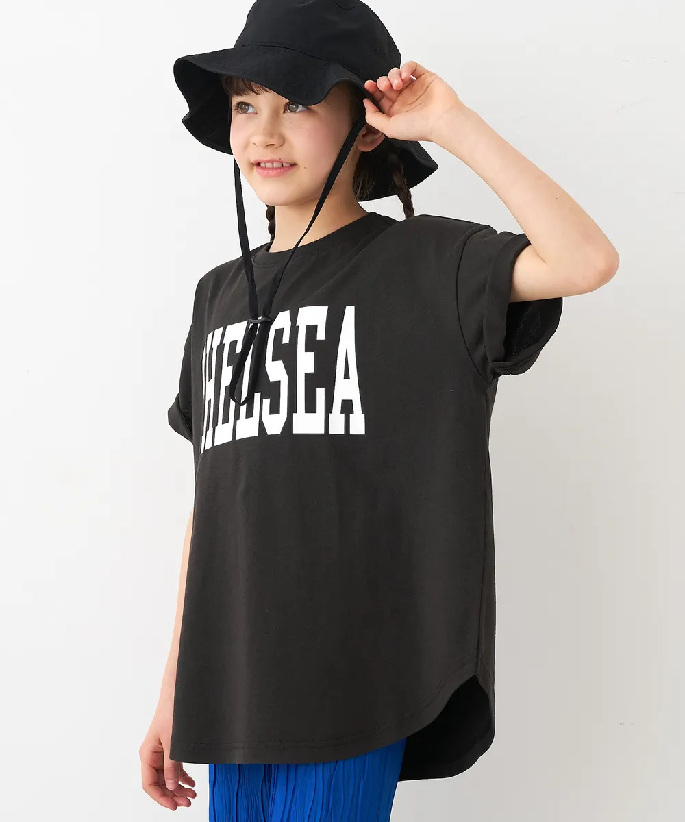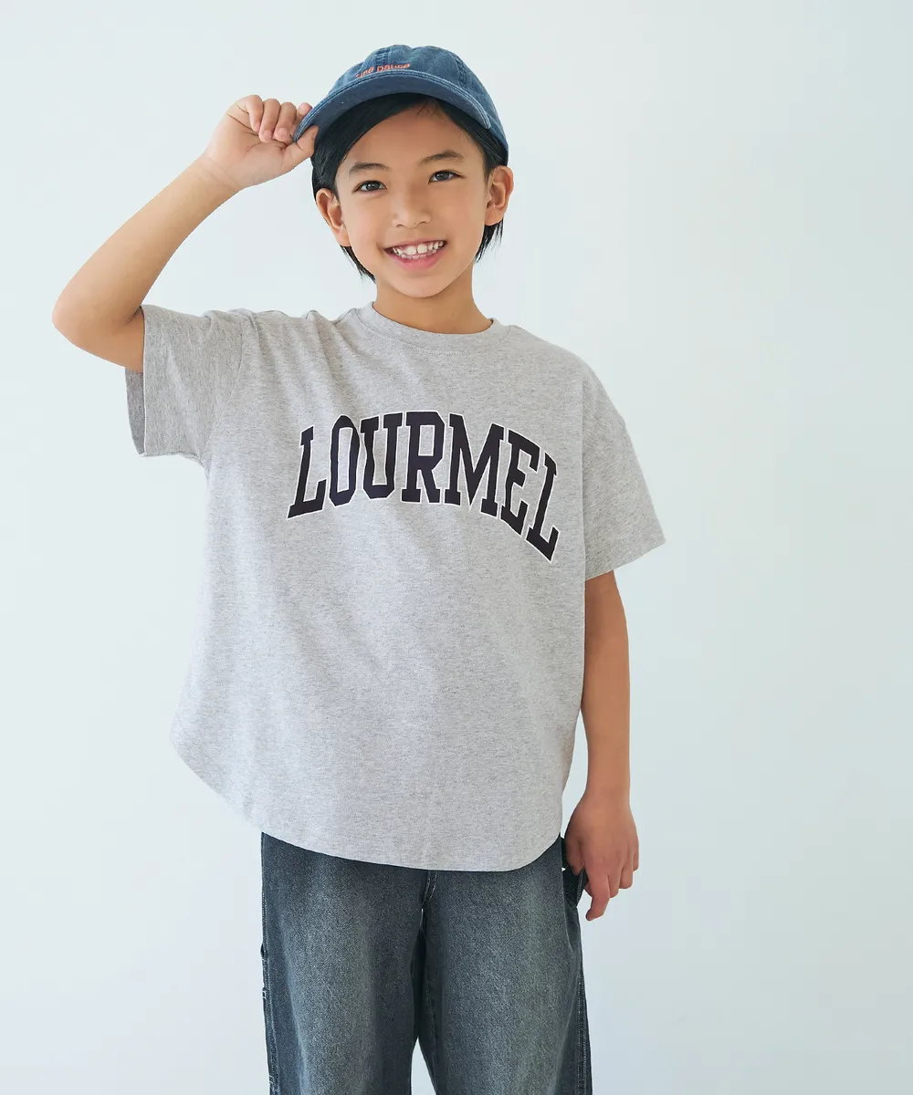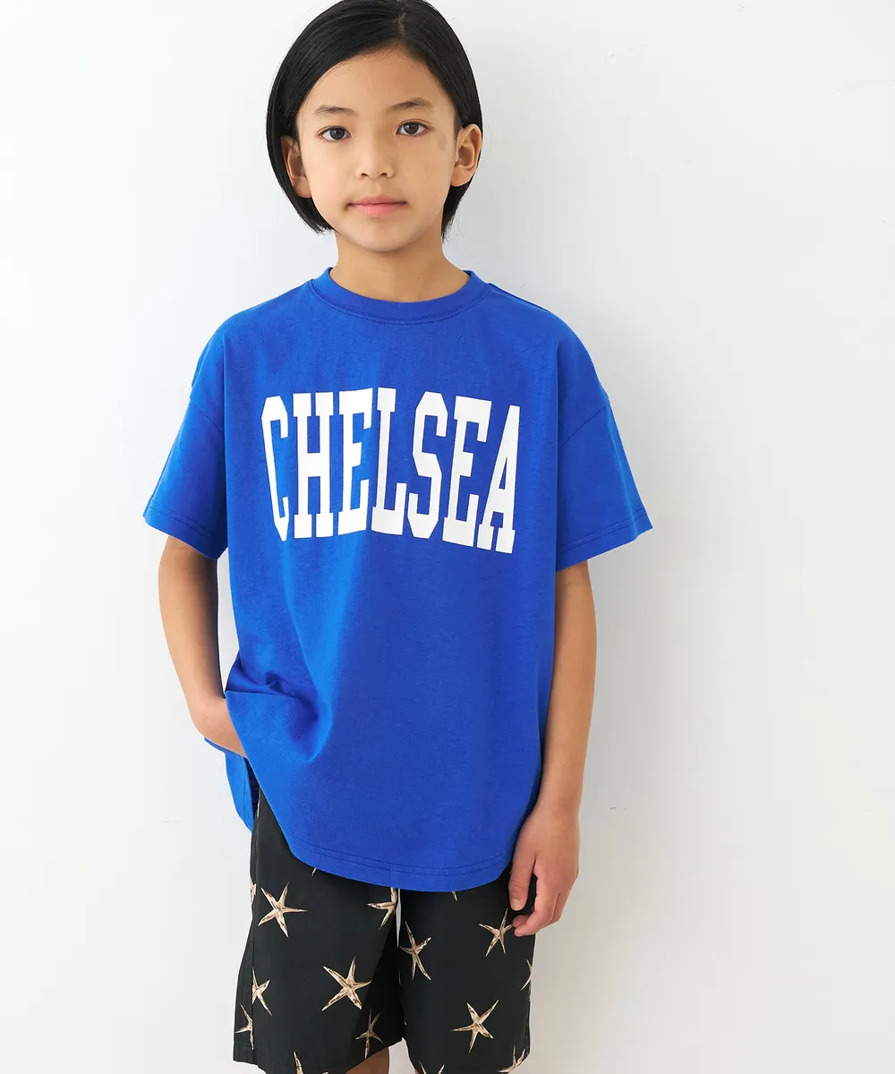 日本 COCA - 純棉學院風圓弧休閒短袖上衣(小孩)-法文字-水藍