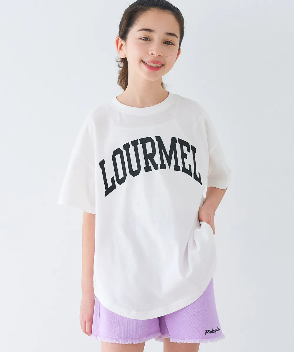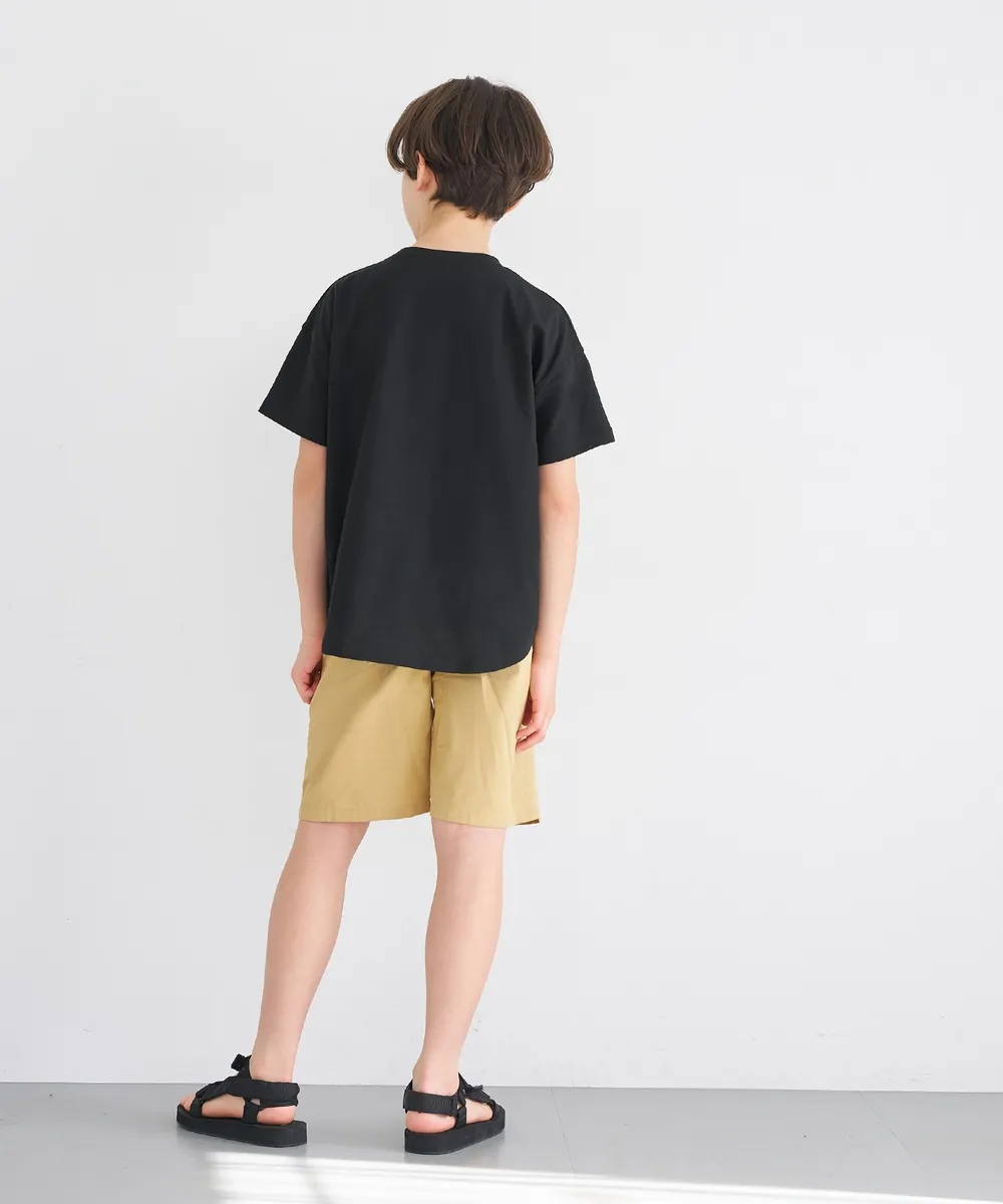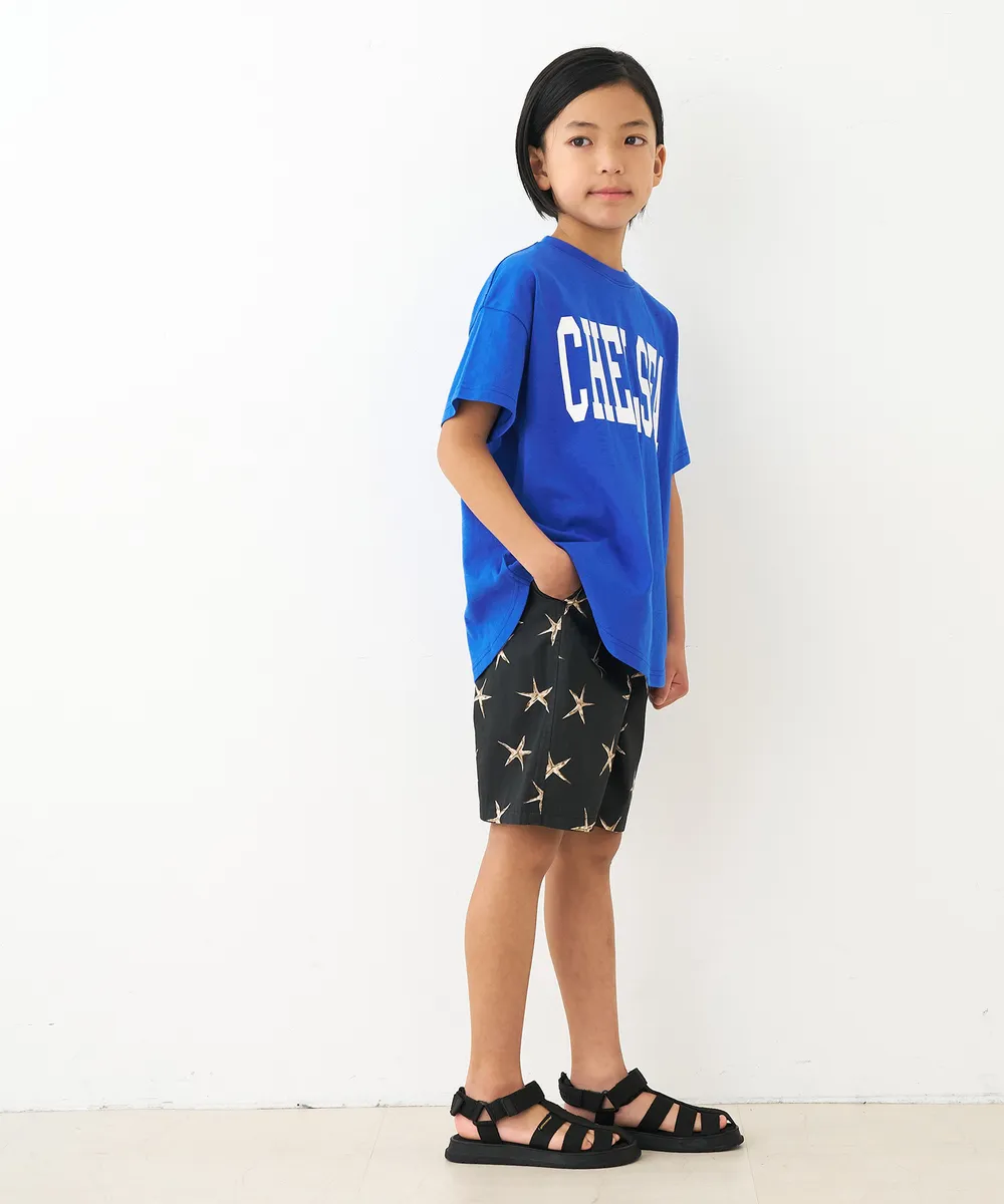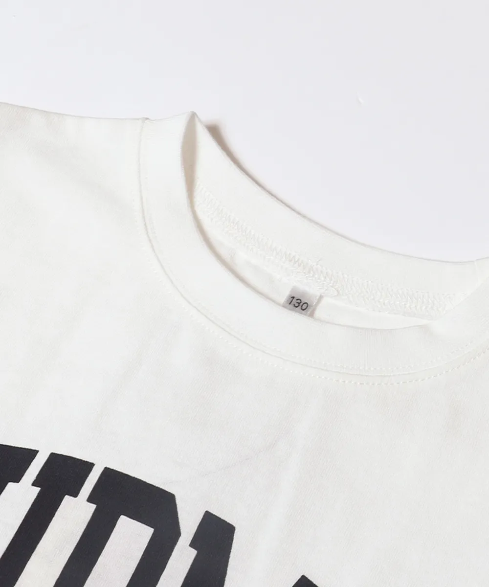 日本 COCA - 純棉學院風圓弧休閒短袖上衣(小孩)-法文字-水藍