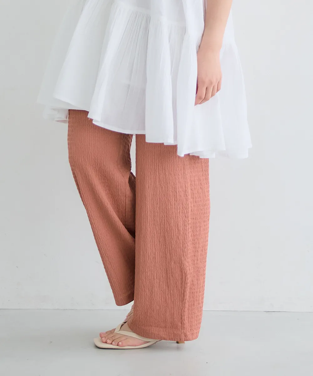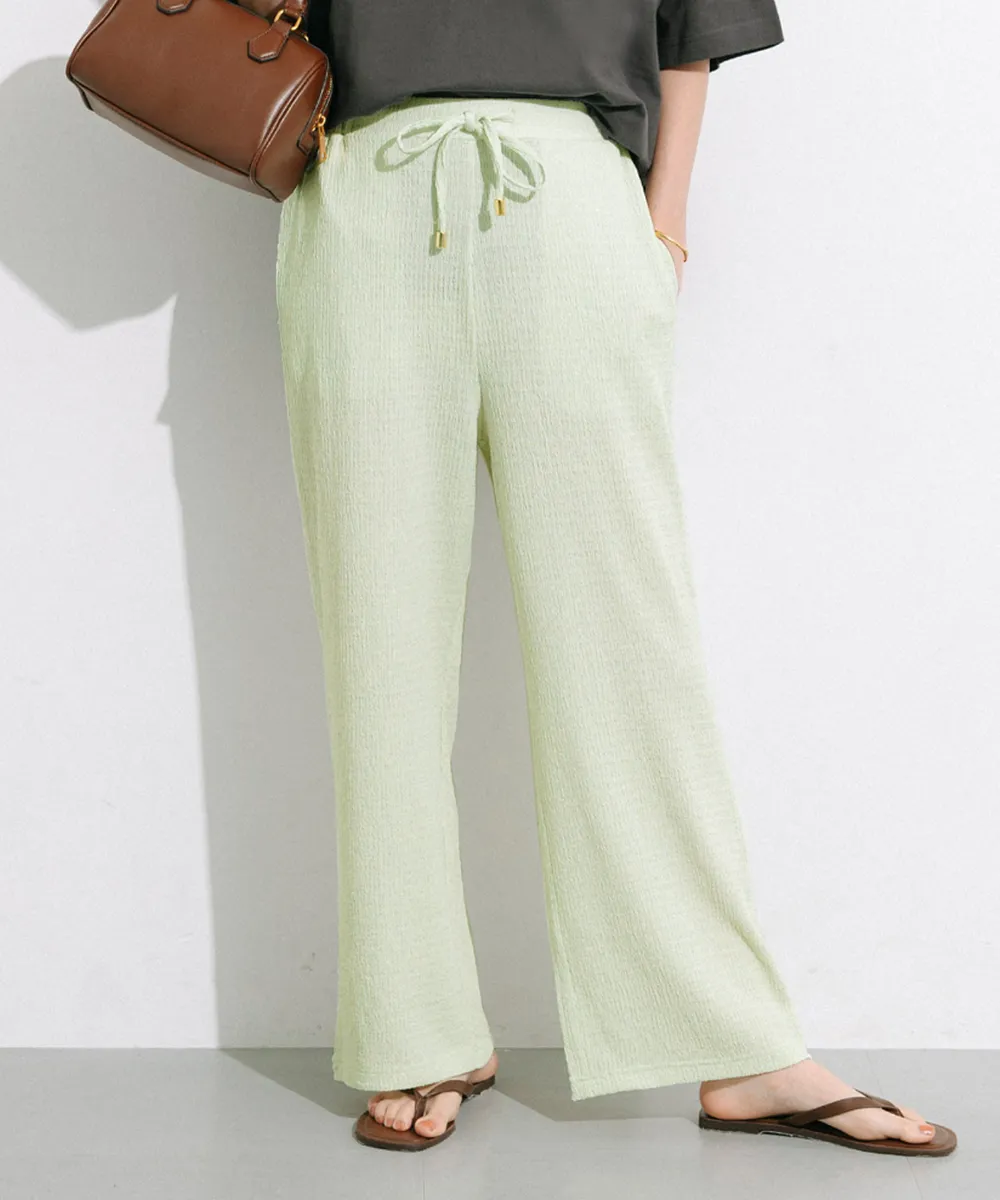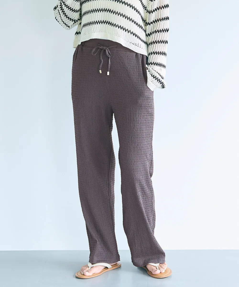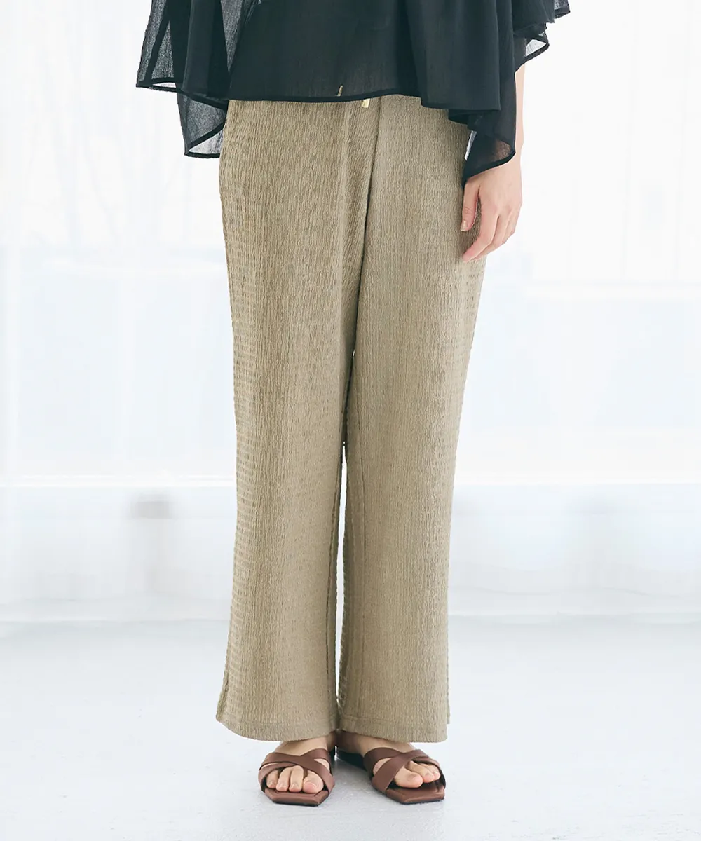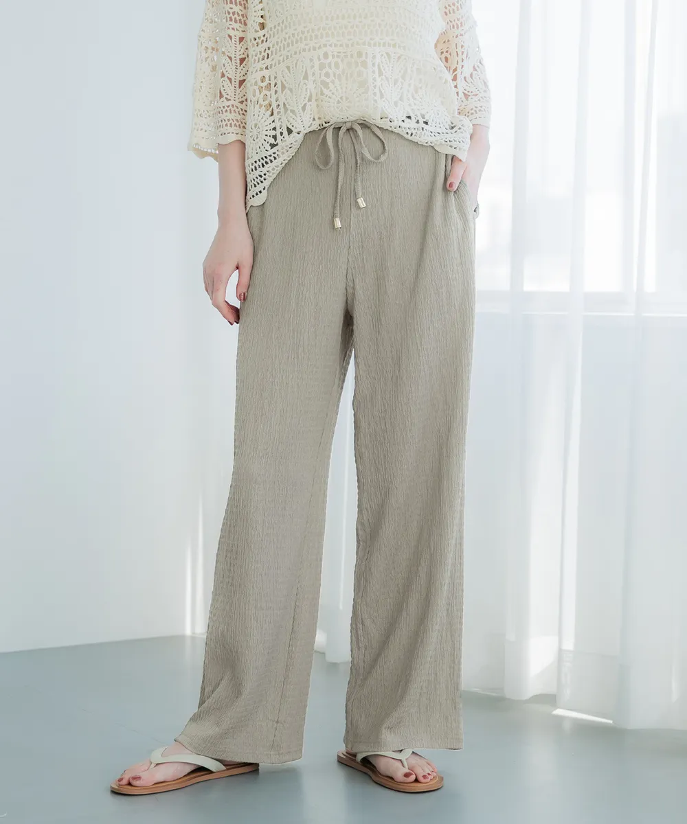 日本 COCA - 皺褶紋理清爽休閒感長褲-卡其