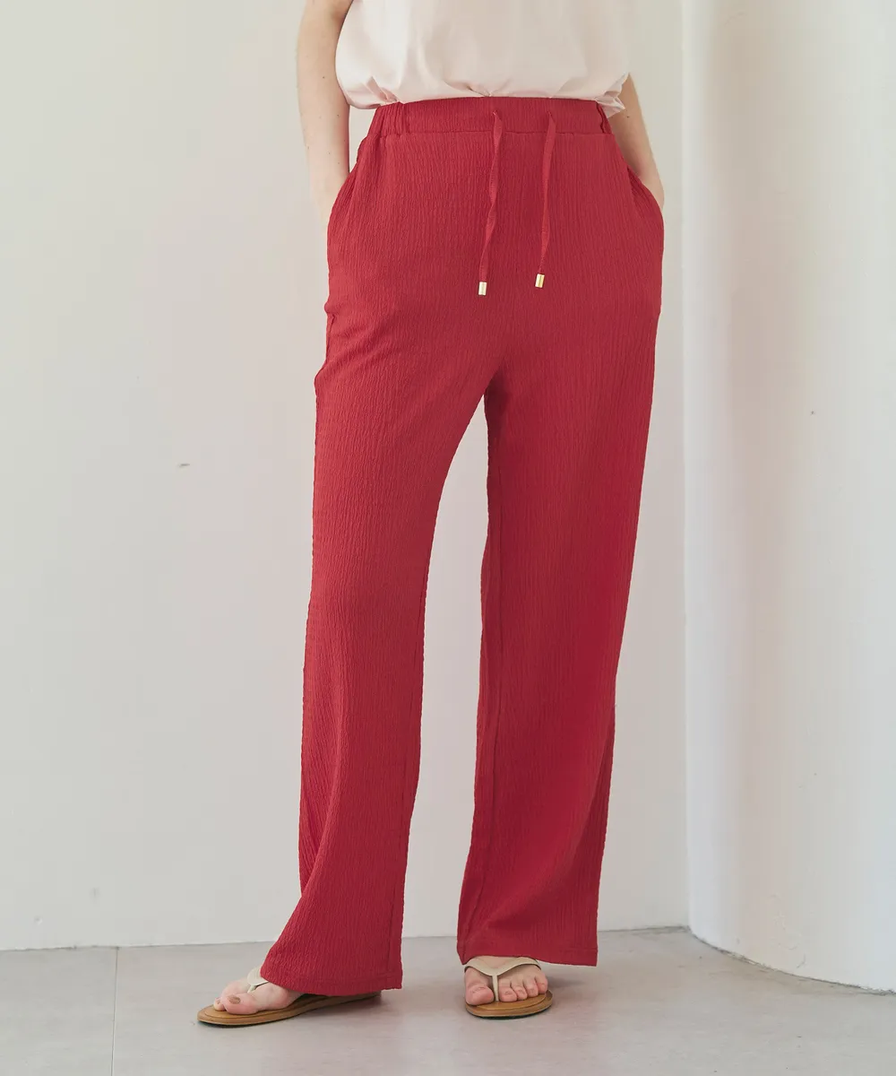 日本 COCA - [可剪裁] 速乾垂墜彈性風琴寬褲-復古紅