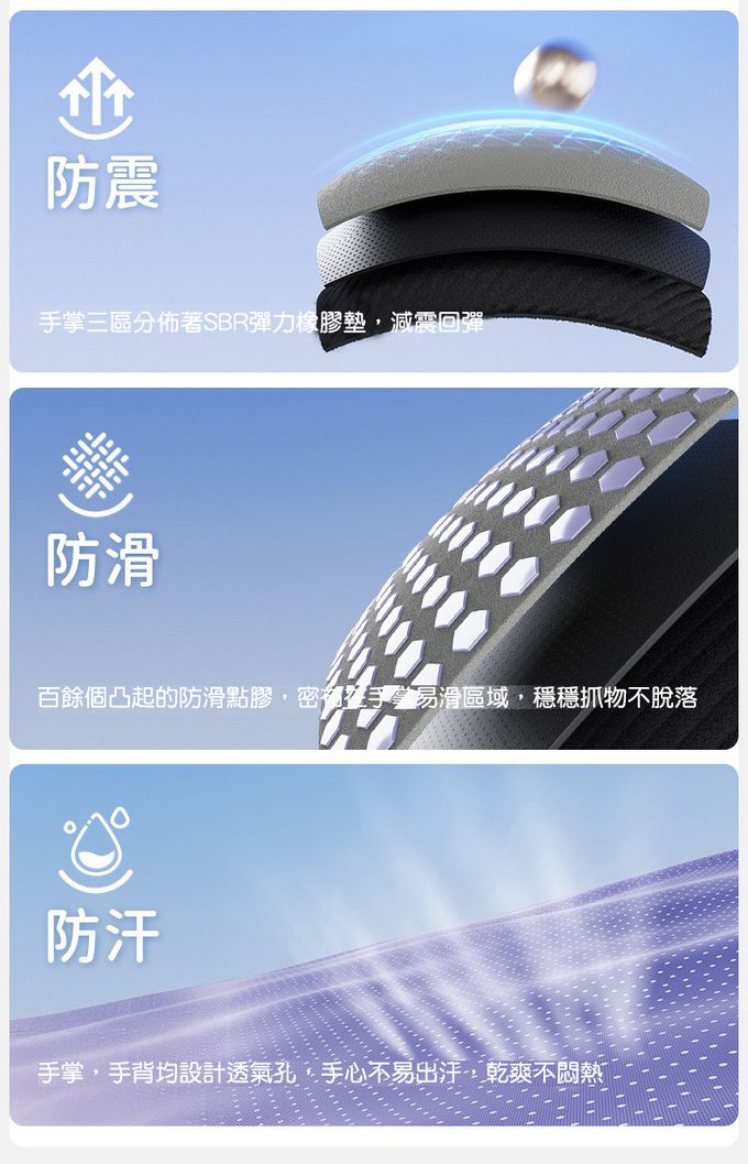 手掌、手背均為透氣孔,不易出汗,乾爽不悶