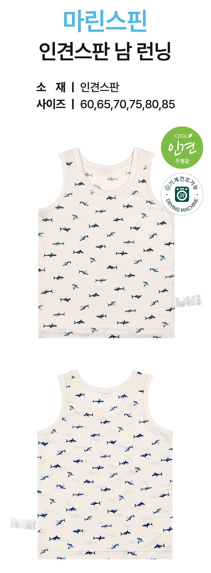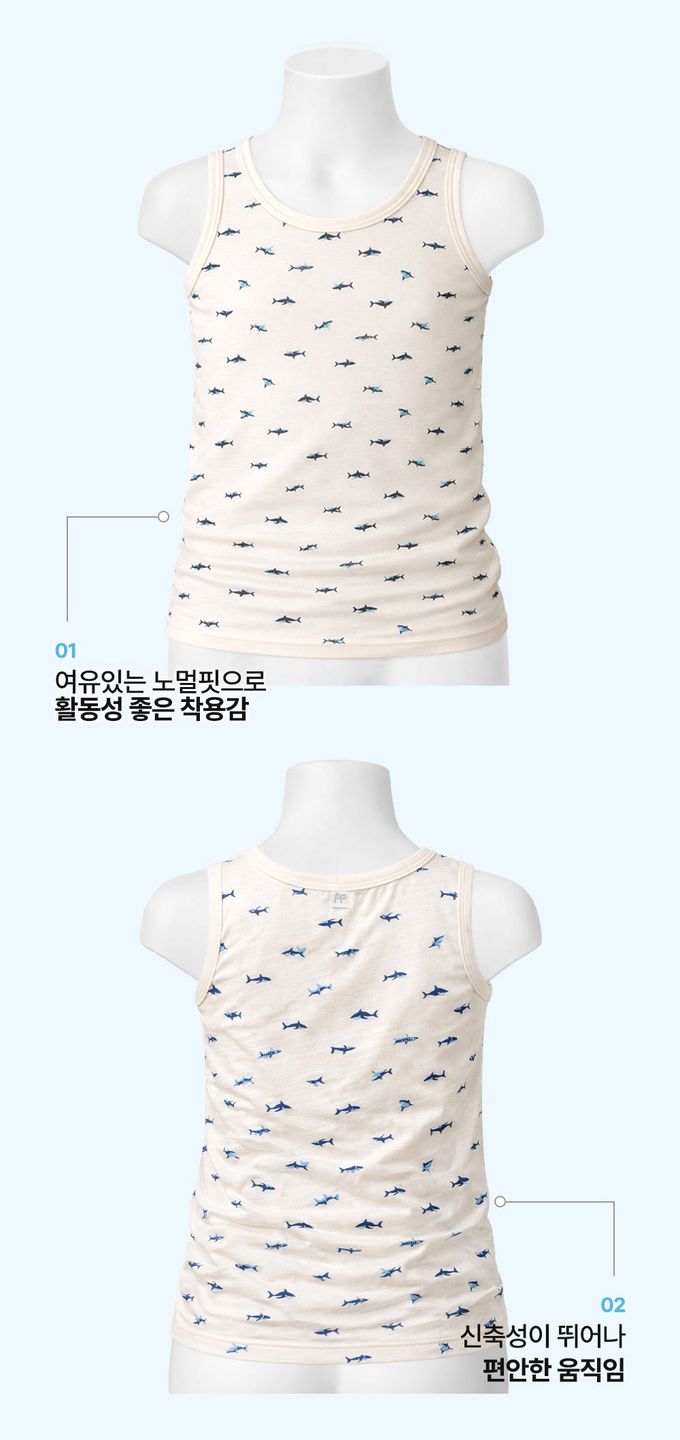 韓國 Ppippilong - 嫘縈涼感透氣背心內衣(男寶)-深藍鯊魚-米膚