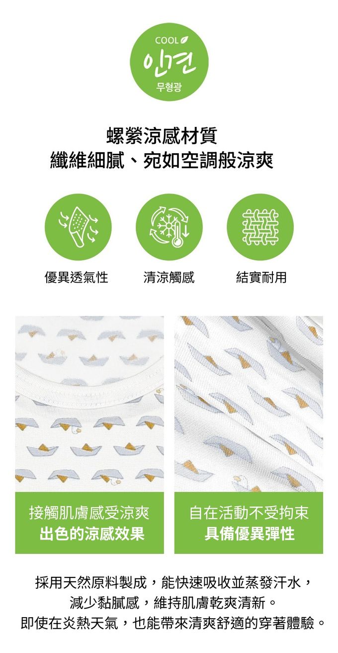 (01.) 柔軟有彈性,穿著舒適,緊貼身形但不緊繃,全天活動也不受限制,孩子可以自由自在地動來動去。