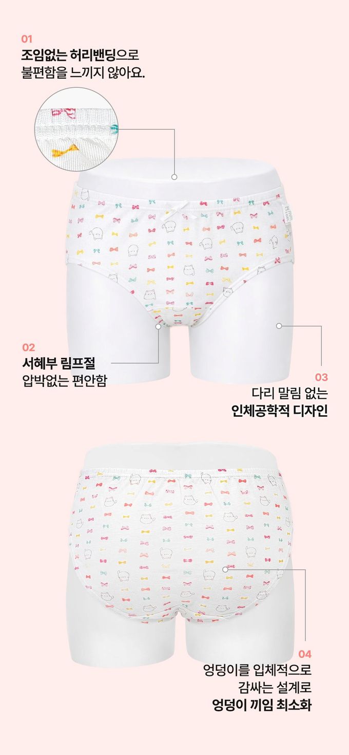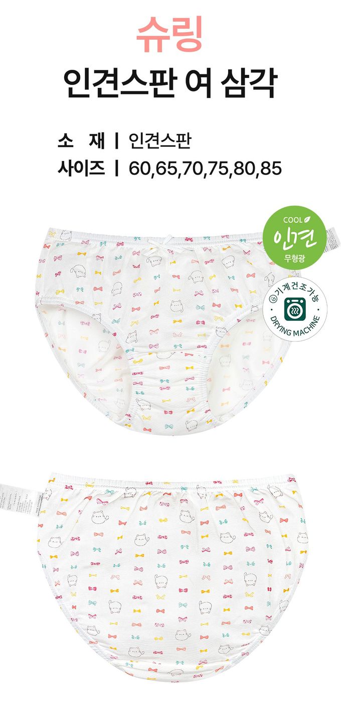 韓國 Ppippilong - 嫘縈涼感透氣三角褲(女寶)-繽紛蝴蝶結貓咪-白