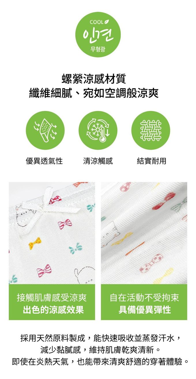 (01.) 柔軟有彈性,穿著舒適,緊貼身形但不緊繃,全天活動也不受限制,孩子可以自由自在地動來動去。