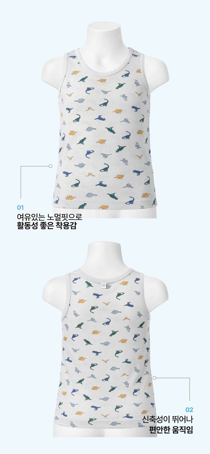 韓國 Ppippilong - aerocool 涼感快乾洞洞背心內衣(男寶)-恐龍世界-灰
