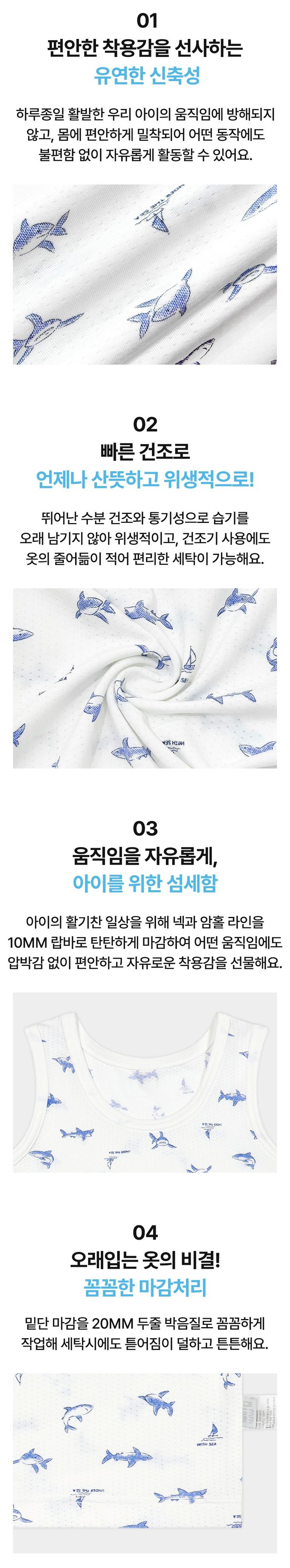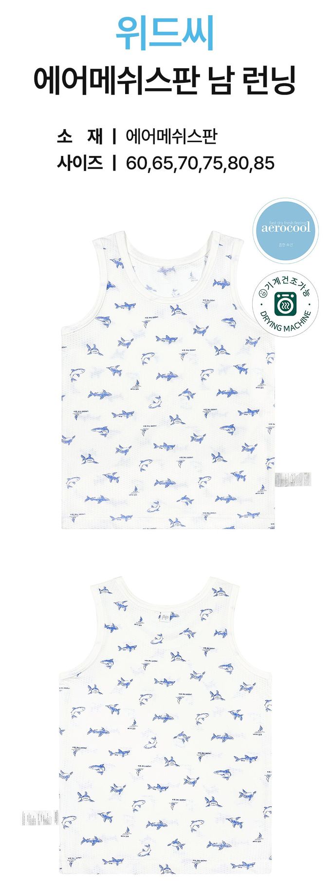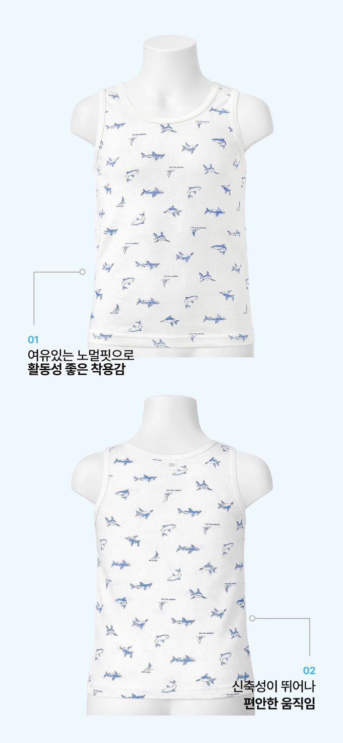 韓國 Ppippilong - aerocool 涼感快乾洞洞背心內衣(男寶)-手繪藍鯊-白