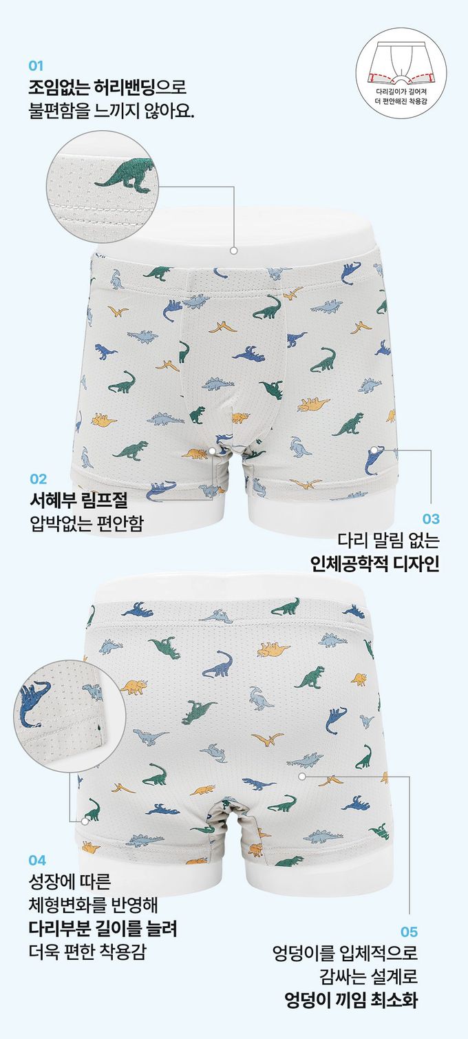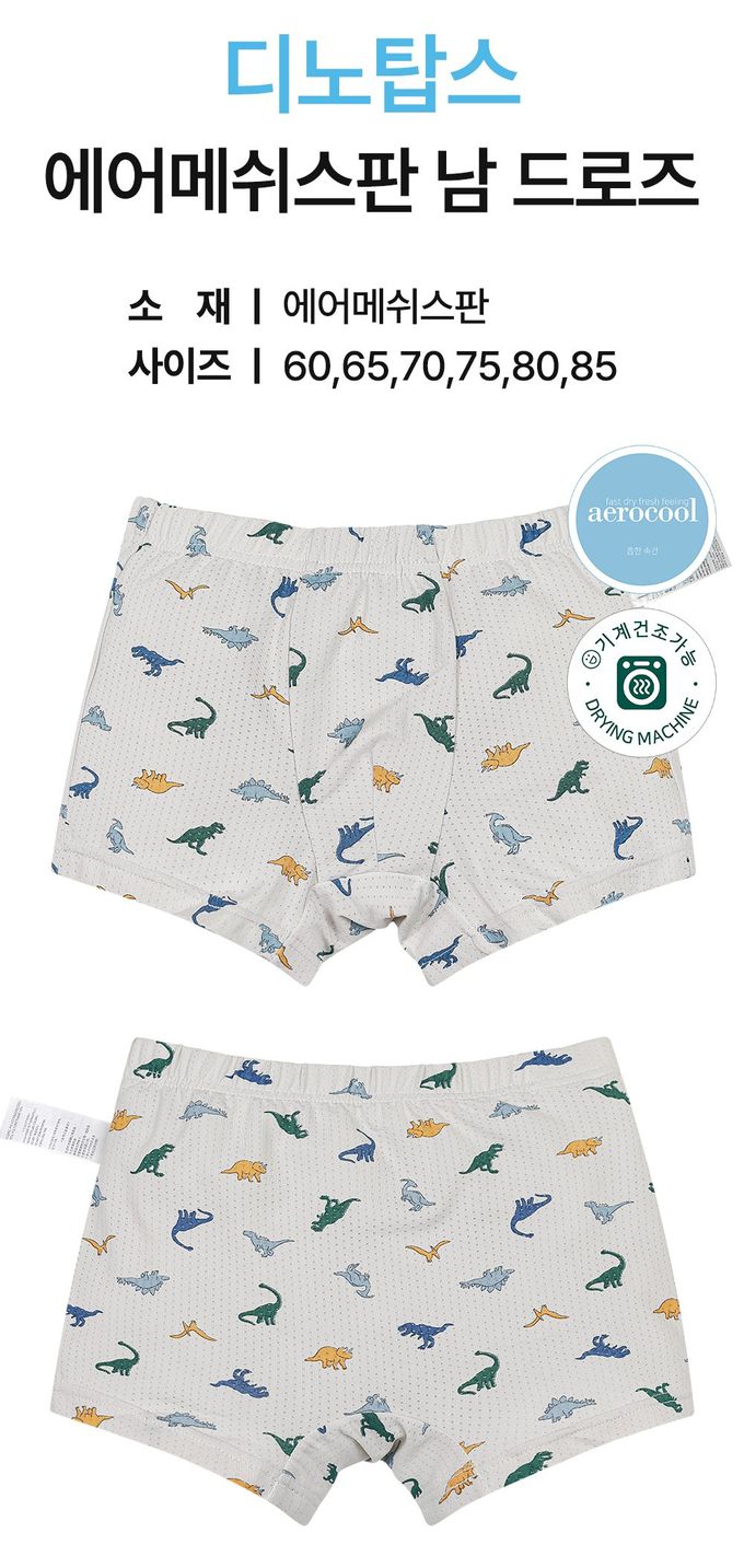韓國 Ppippilong - aerocool 涼感快乾洞洞四角褲(男寶)-恐龍世界-灰