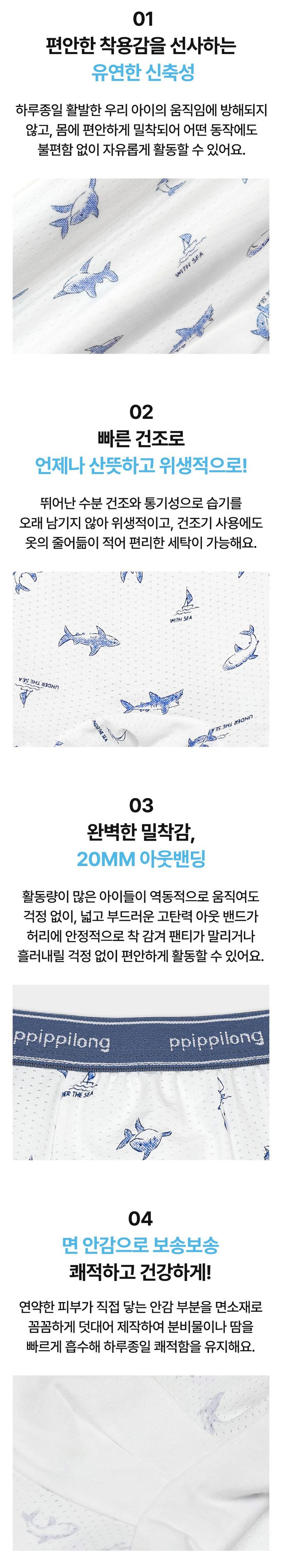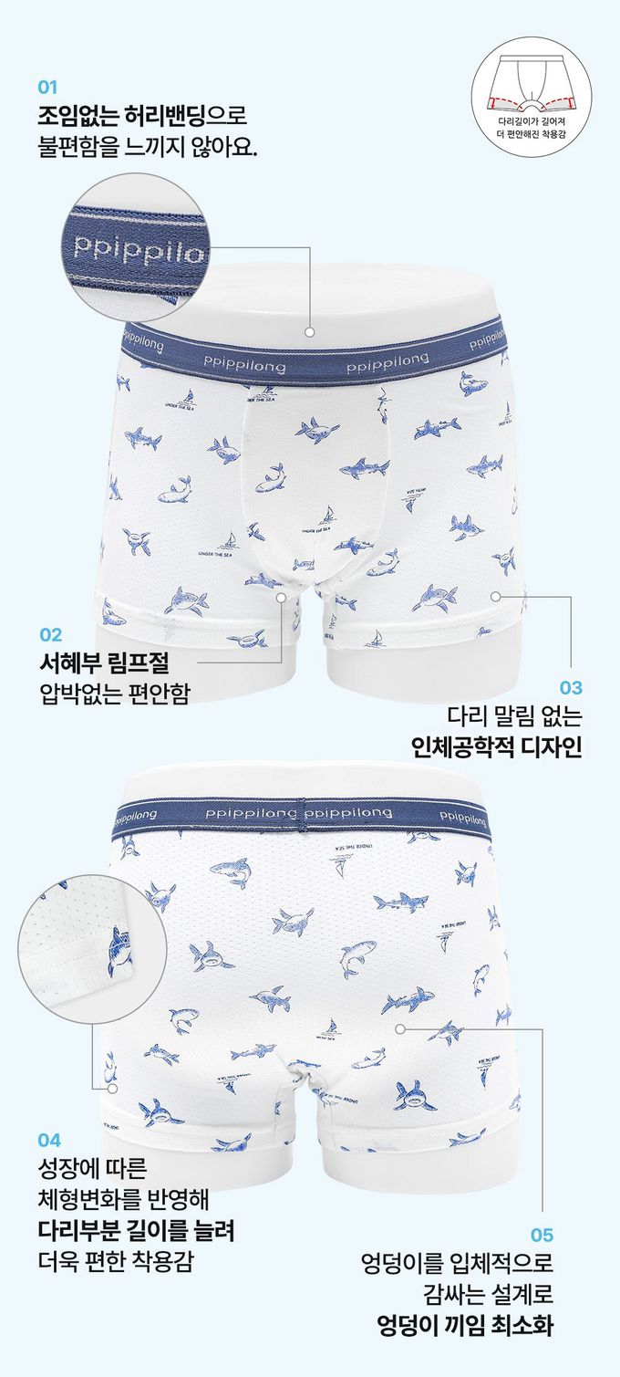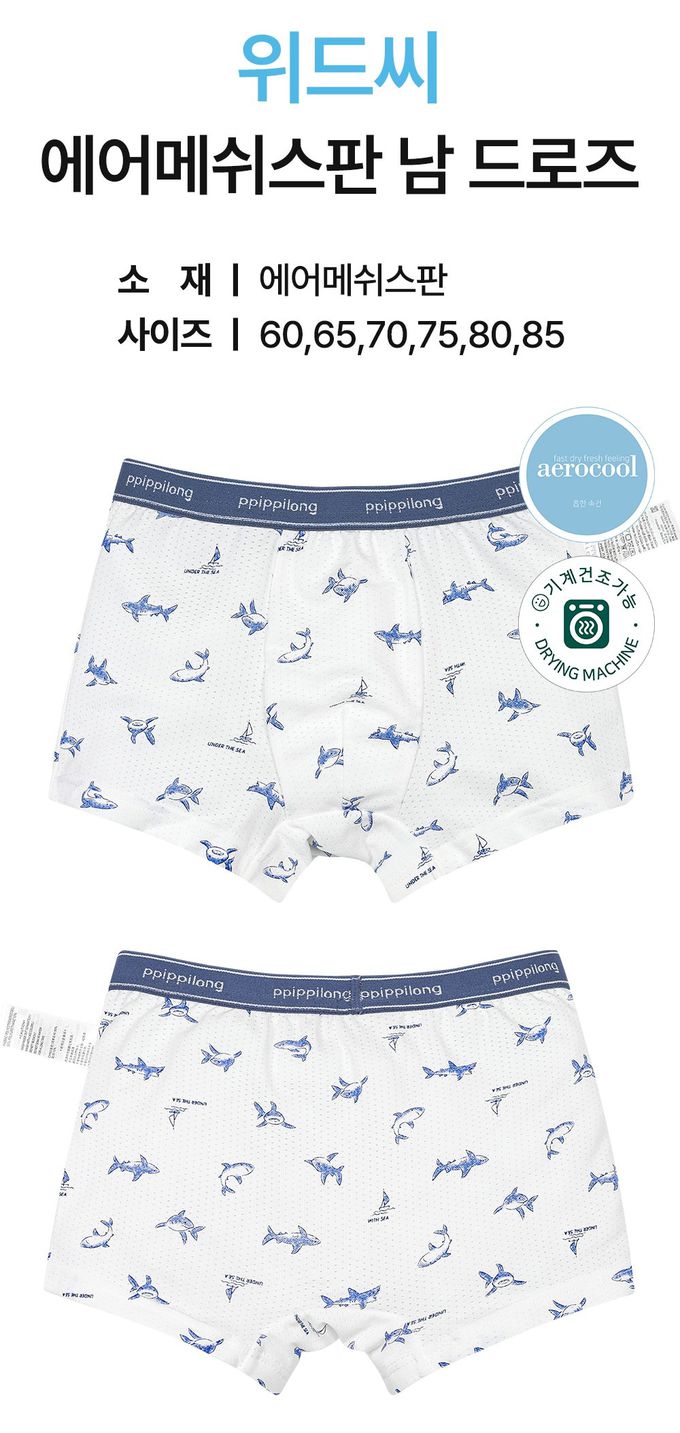 韓國 Ppippilong - aerocool 涼感快乾洞洞四角褲(男寶)-手繪藍鯊-白
